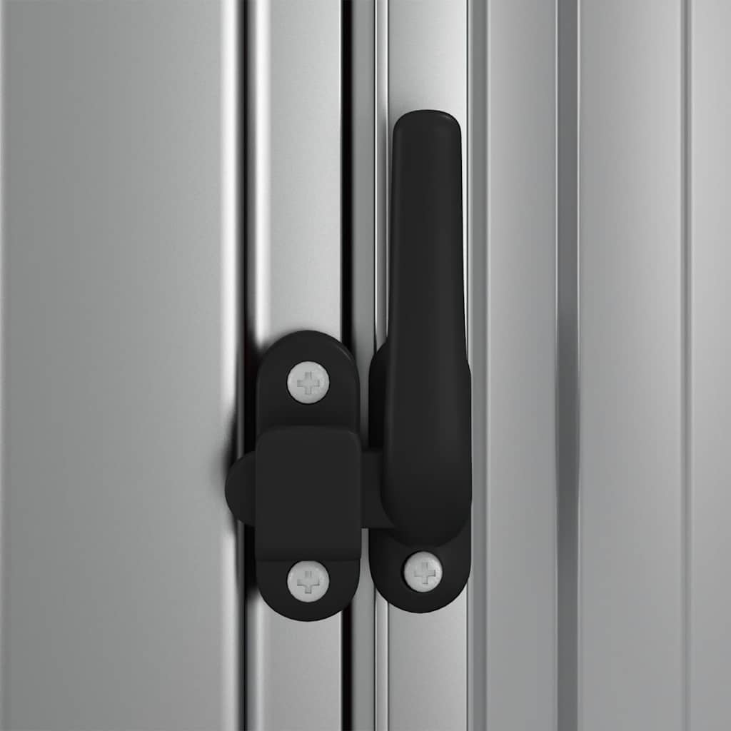 This garden shed is the ideal solution to store your tools outdoors. Premium material: This outdoor storage shed, made of galvanised steel, requires minimal maintenance and is exceptionally durable.Sloping roof: Rainwater automatically drains from the roof thanks to its sloping design.Ample space: The storage shed offers enough storage space to keep your tools and other items.Lockable door: The door also has a lock function that provides added security.