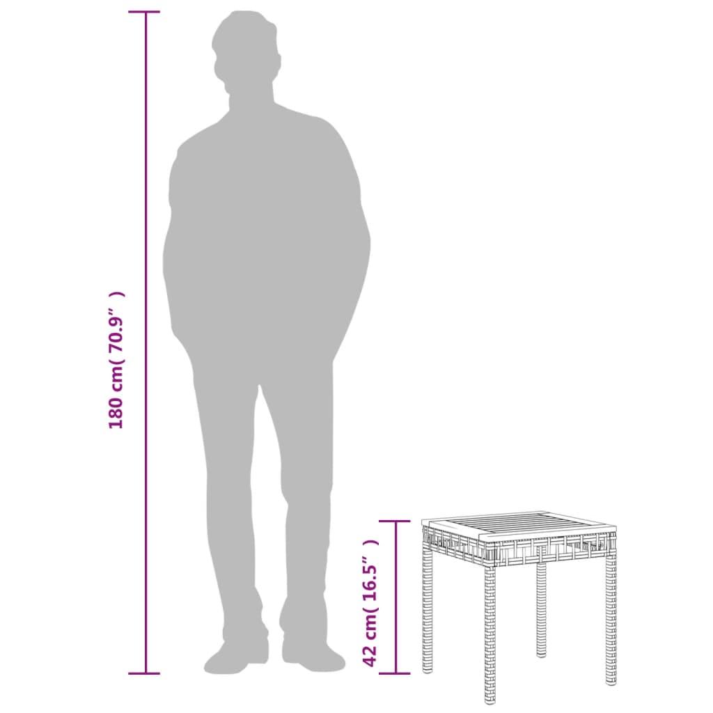 Gather around this garden table to enjoy a cup of coffee or have a chat with your family and friends in the garden, backyard, or on the patio! Durable material: PE rattan, also known as poly rattan, is a strong, low-maintenance synthetic material that looks like natural rattan. It's lightweight, easy to clean, and commonly used for outdoor furniture due to its durability and weather-resistant properties.Stable and easy-to-clean tabletop: This garden table has an acacia wood top that is sturdy, durable, and easy to clean with a damp cloth.Robust and stable frame: The powder-coated steel frame ensures that the garden furniture is strong and stable for daily outdoor use. Good to know:To make sure your outdoor furniture stays beautiful, we recommend protecting it with a waterproof cover.