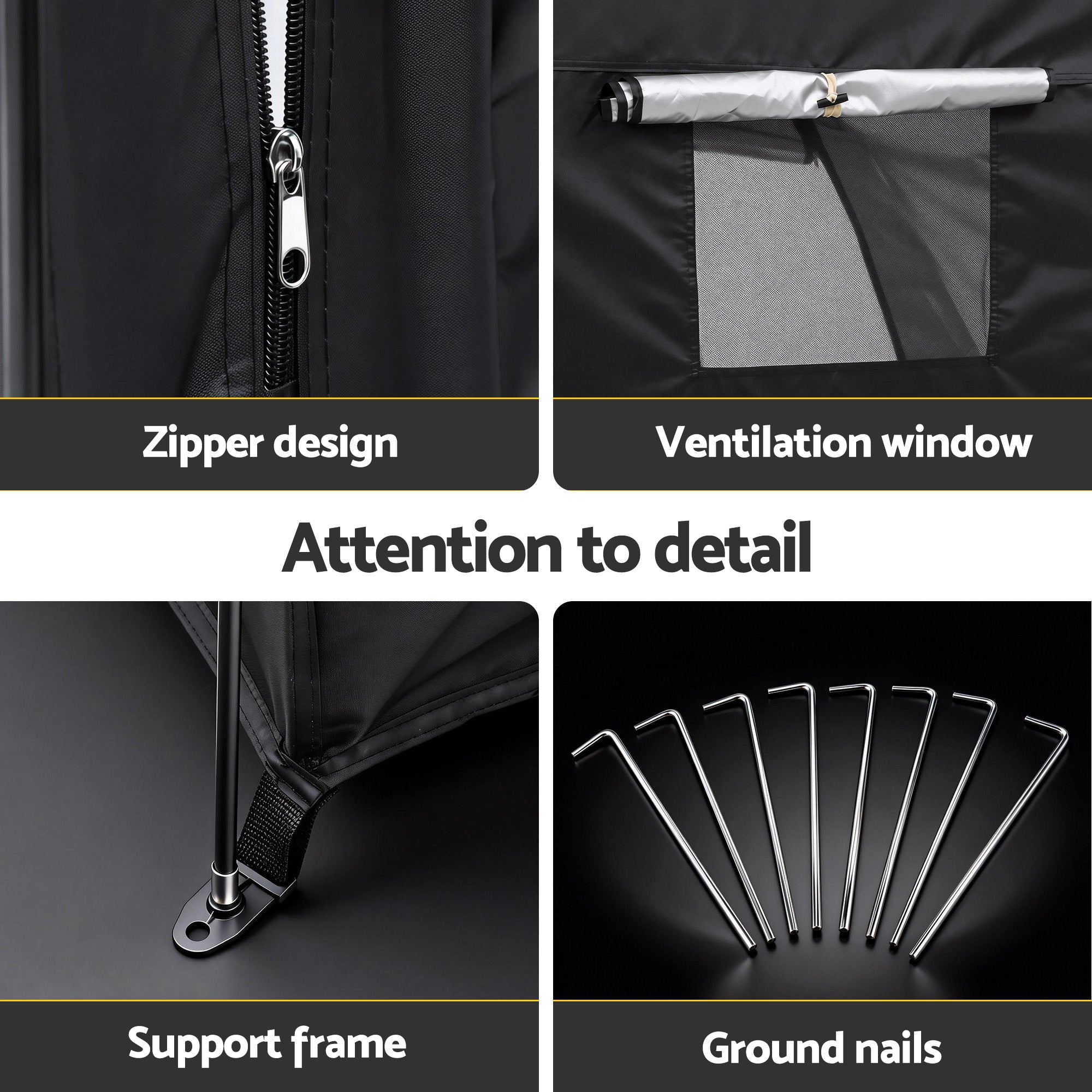 Protect your valuable bicycles and outdoor gear from the harsh Australian weather with the Giantz Bike Storage Tent. This durable and practical shelter is an essential addition to any home, providing a dedicated, secure space for your equipment.Constructed from high-quality 210D silver-coated Oxford fabric, this tent offers reliable, all-weather protection. The material is designed to be highly water resistant and provides excellent UV protection, safeguarding your bikes from sun damage and rust. The structure is supported by a strong support frame and glass fiber poles, ensuring stability and longevity, even when facing strong winds. Included ground nails provide extra security.The Giantz Bike Storage Tent features a secure zipper design for easy and quick access to your stored items. Inside, you'll find large storage space, making it suitable for multiple bicycles, lawnmowers, or garden tools. A crucial ventilation window is integrated into the design to minimise condensation and maintain air circulation, which is vital for keeping your gear in top condition.Designed with the user in mind, this Bike Storage Tent features easy assembly with clear instructions, allowing you to set it up quickly in your backyard, carport, or shed. When not in use, the lightweight design makes it easy to carry and store, offering a flexible storage solution.