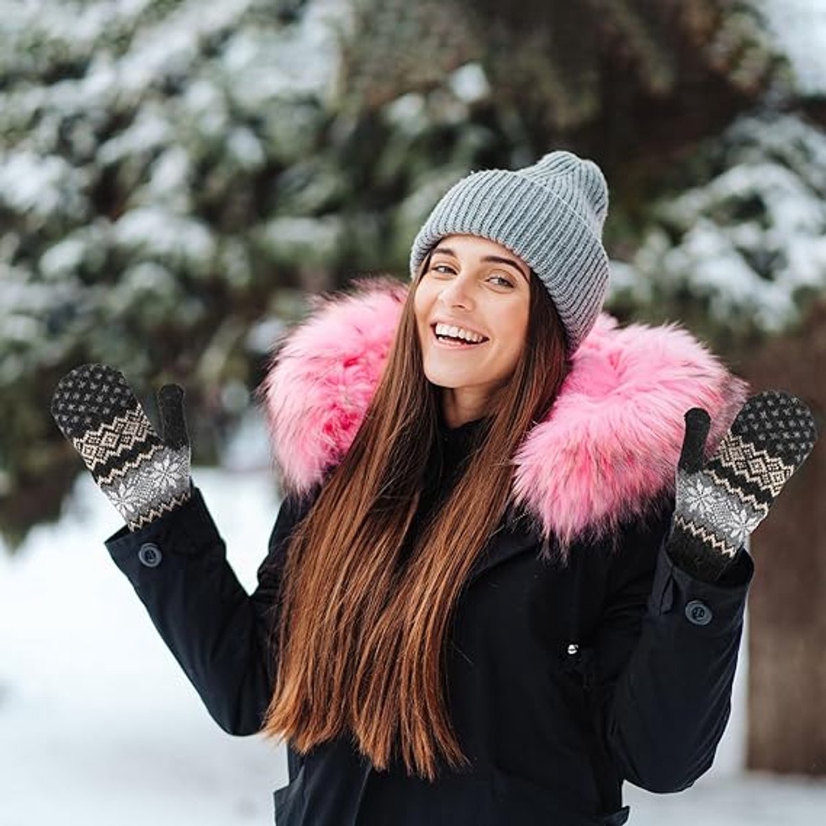 • Practical Winter Gloves: These thick knitted snowflake mittens will keep your hands warm and comfortable in cold weather, making winter more enjoyable.