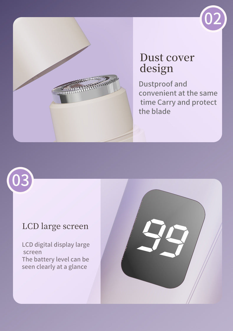 Discover the ultimate in hair removal with our Women's Multifunctional Electric Shaver, featuring a sleek gradient design and a digital display. This Type-C rechargeable hair remover offers a double-headed system with a shaving blade and short blade trimmer, perfect for private areas, underarms, and full-body use. Crafted from durable ABS + paint material, it ensures painless, smooth results every time.