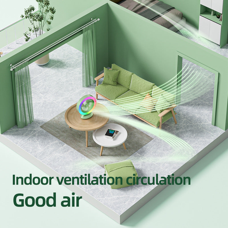 Experience the perfect blend of cooling power and captivating visuals with our RGB Desktop Fan. This stylish and functional fan features a vibrant RGB light ring, adjustable speeds, and a portable design, making it the perfect addition to your desk, bedside table, or any space in need of a refreshing breeze.