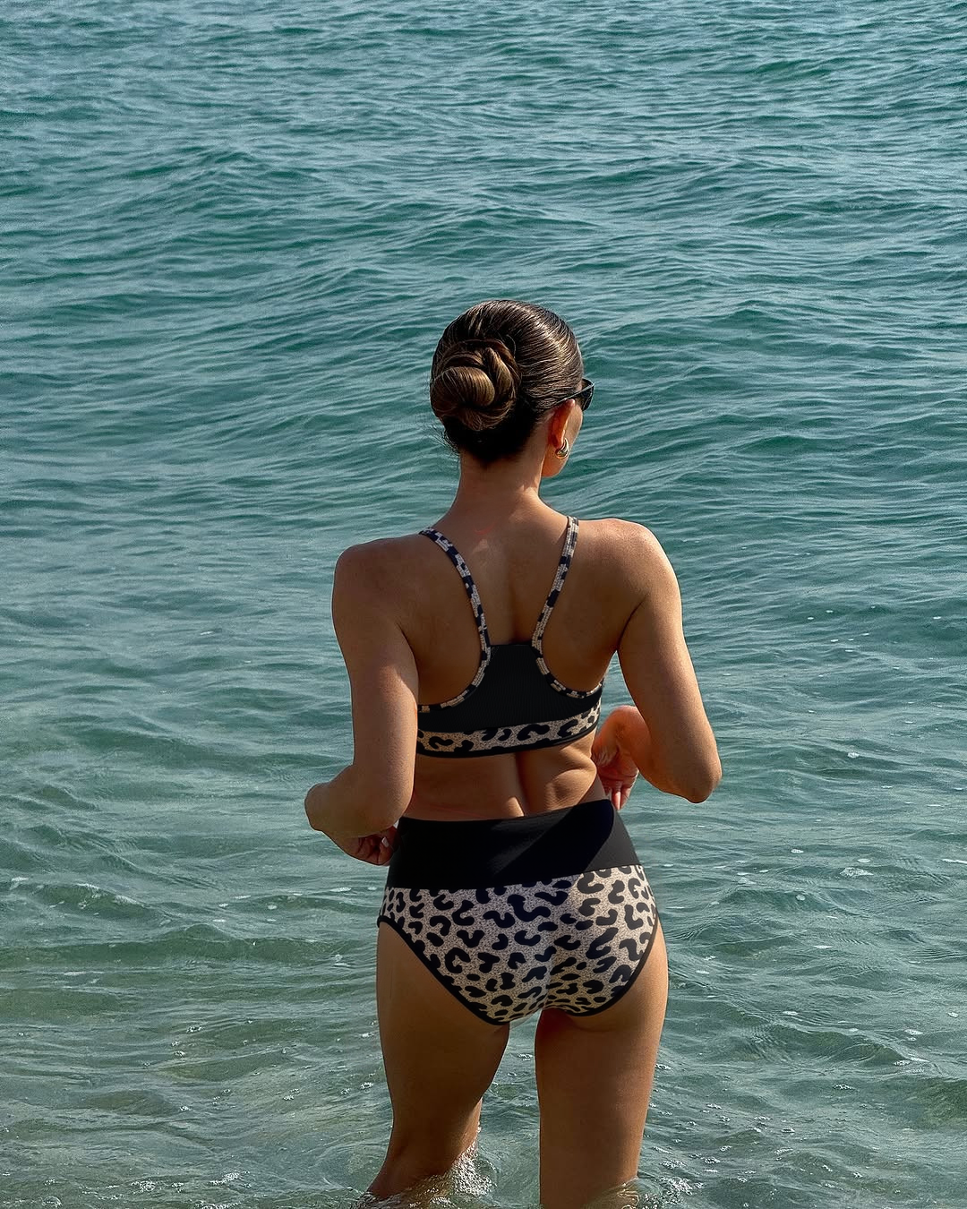 Halter Neck Tank Top Two Pieces Swimwear Women High Waist Bikini Size XL