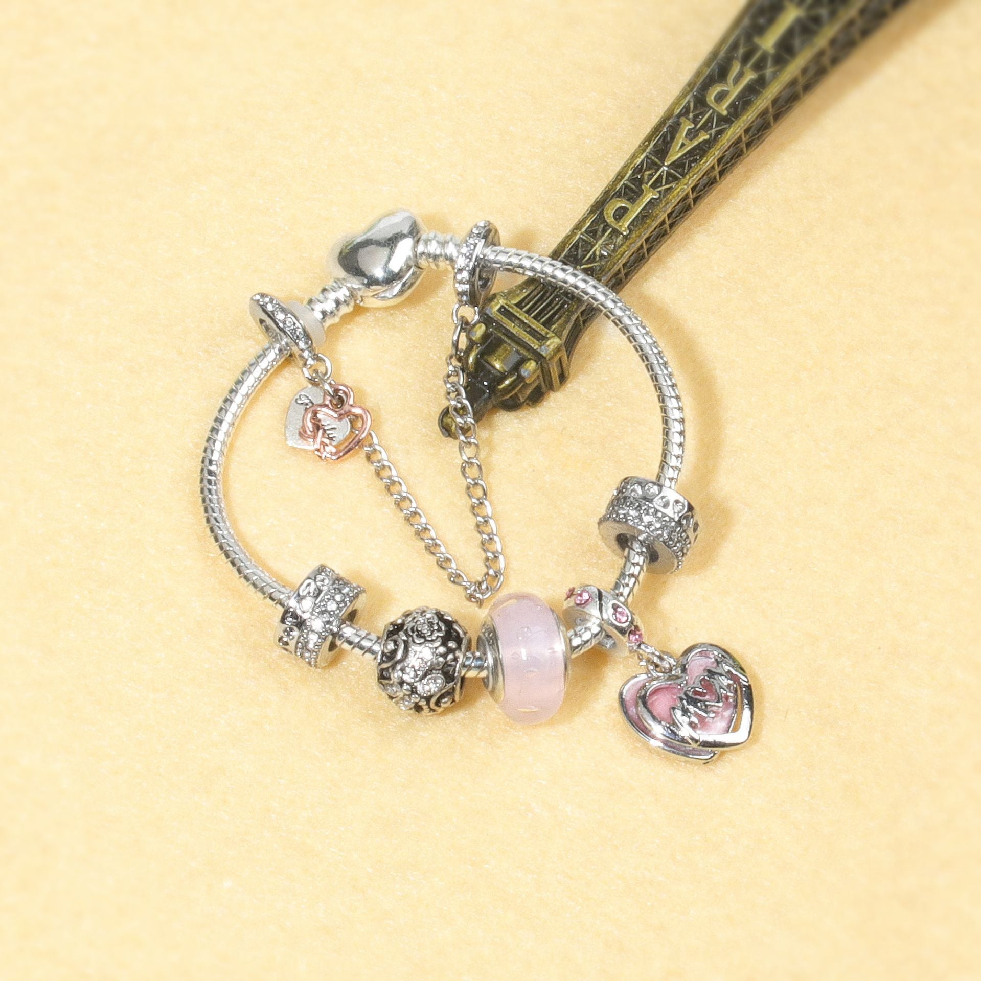 Heart Charm Beaded Bracelet with Crystals(20cm)