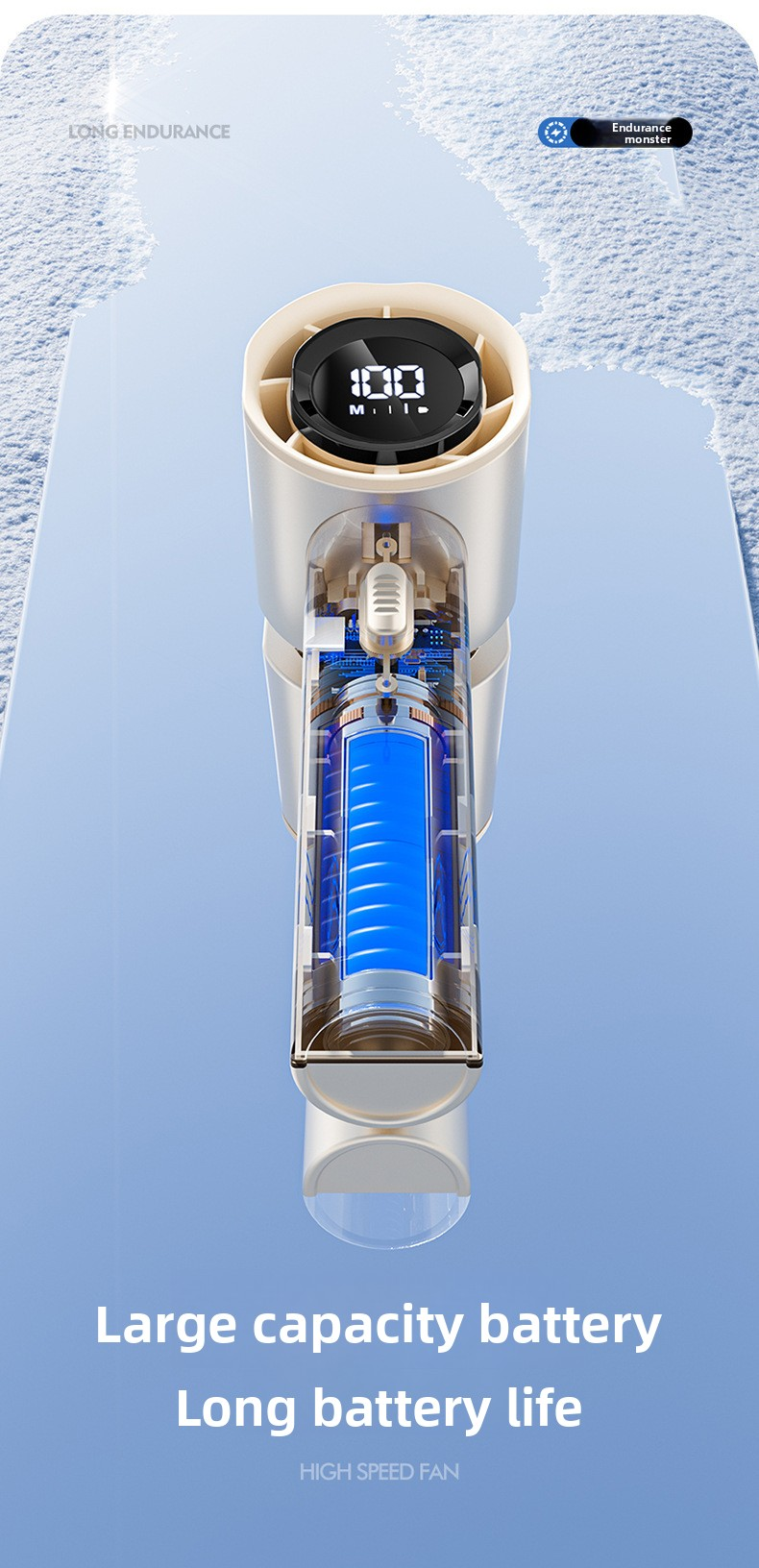 This "Violent" Turbo Fan redefines what a portable fan can do. Unlike traditional fans that disperse weak air, this model utilizes an aviation-grade turbine design to compress and propel air further, creating a cooling sensation even from a distance. The acoustic noise reduction technology ensures that while the wind is strong, the operation remains relatively quiet, making it suitable for office desks, public transport, or quiet reading corners.