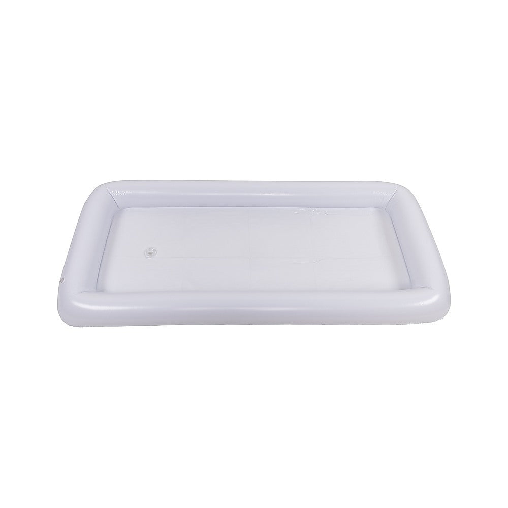 Measuring 125 x 65 x 10cm, it's roomy enough to hold multiple bowls, dishes, drinks, and cans. Its convenient, inflatable, and portable design makes it ideal for picnics, family reunions, BBQs, beach weddings, and more. Weighing only 0.4kg, it's easy to transport and set up anywhere.