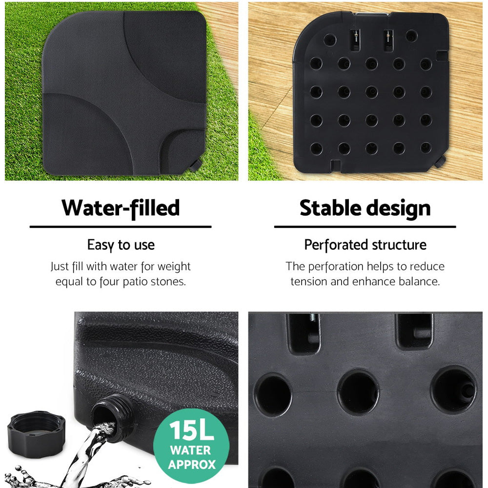 As alfresco relaxing and dining at home is fast becoming a favourite past time for many people, our outdoor umbrella is a perfect complement to any outdoor furniture setting. Featuring an elegant waterproof and UV-resistant fabric top covering 3m in diameter, the umbrella utilises a cantilevered side post to allow maximum useable space under the shade. No centre pole to get in the way of your enjoyment. Better still, the umbrella top and base can be adjusted and pivoted towards the sun for the right amount and angle of shade. Opening and closing is also made easy with a user-friendly cranking system and the total assembly can be stored away with minimum fuss. Not least, the entire steel frame, such as the 8-rib top supports, and supporting pole are power-coated for toughness while the portable heavy-duty HDPE plastic base an be filled with sand or water of up to 60kg for a very firm support at all times.