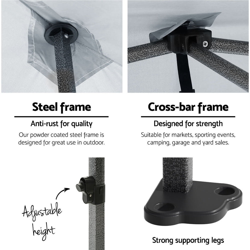 Featuring high density, long lasting PU coating oxford fabric with effective UV and water repellent treatments, this INSTAHUT 3X3 Pop Up Gazebo provides a lovely ground and canopy coverage of 300 x 300cm. It is perfect for all your upcoming outdoor activities, as a sunshade station as well as a shelter for unexpected rains.