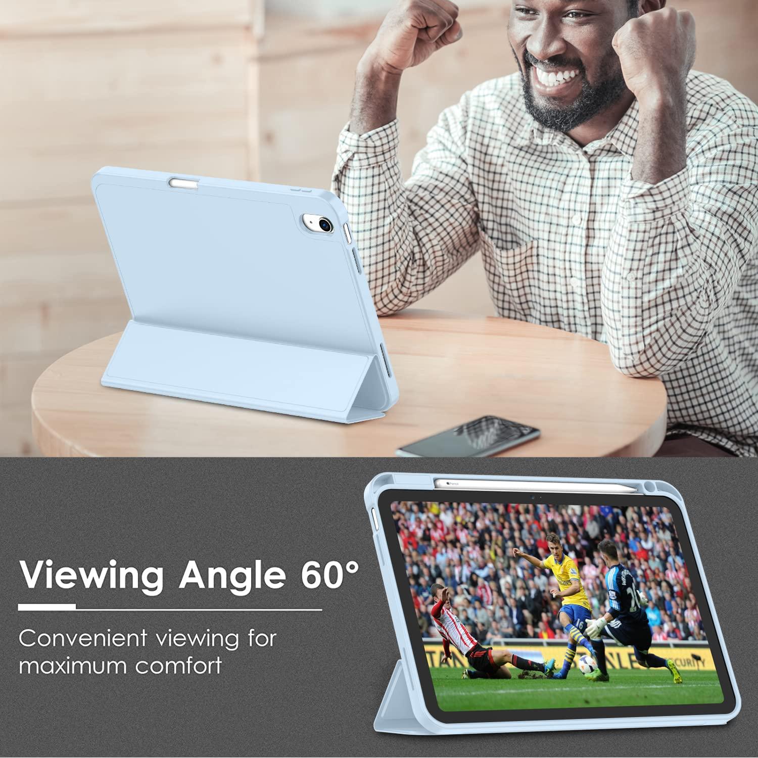 iPad 10th Case 10.9 Inch 2022 with Pencil Holder, Smart iPad Case with Soft TPU Auto Wake Sleep Sky Blue