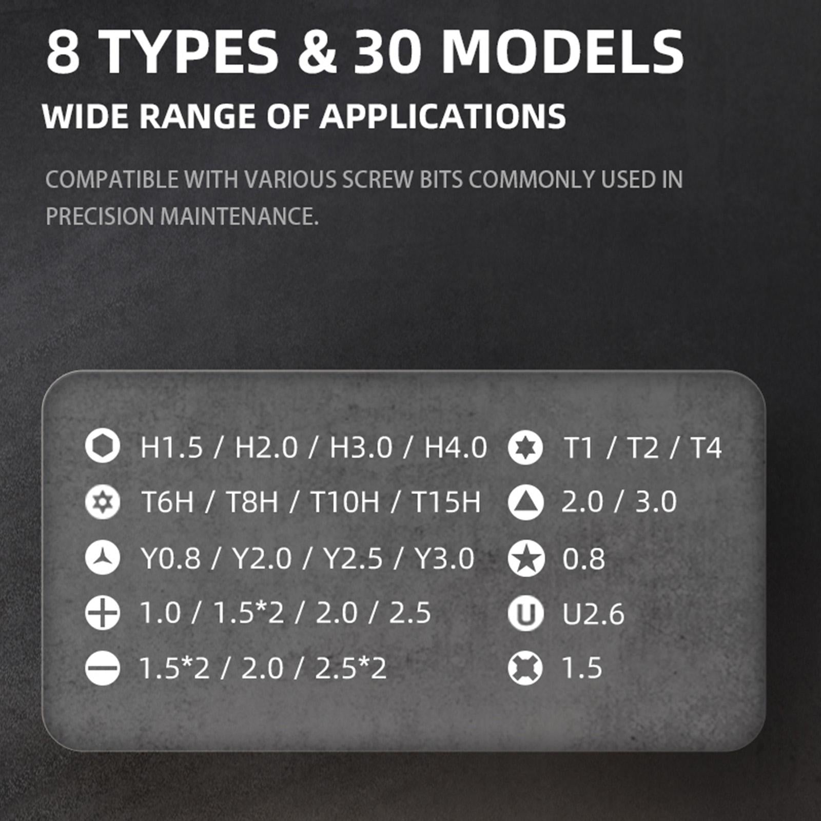 � 8 type 30 pcs of H4 X 28mm precision repair CR-V screwdriver bits, wide range of applications. Detailed and comprehensive.