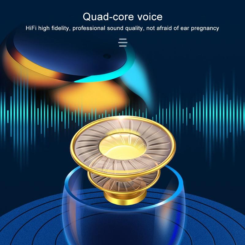 • Middle LED digital display shows charging box power; left and right breathing lights display earphone battery power