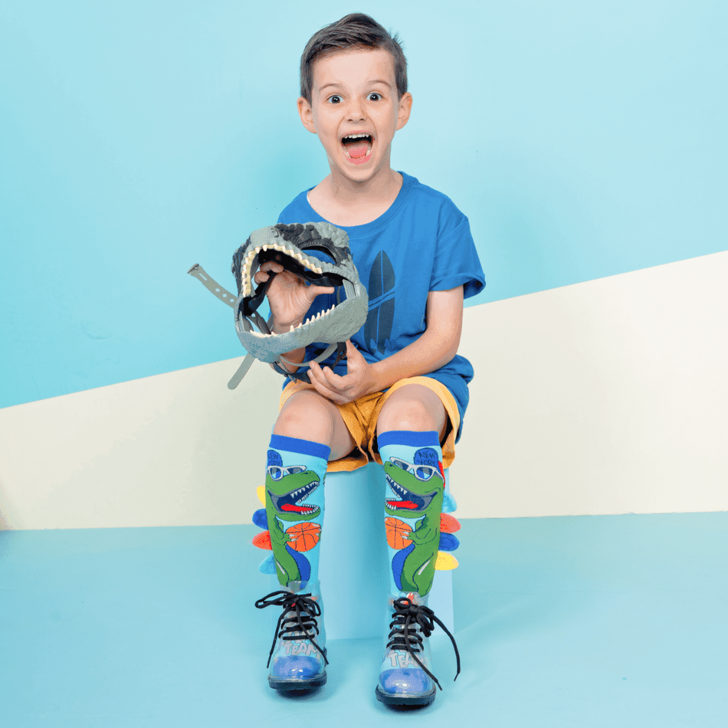 Let the world hear you ROAR, while wearing our coolest Dinosaurs Socks with plush spikes!