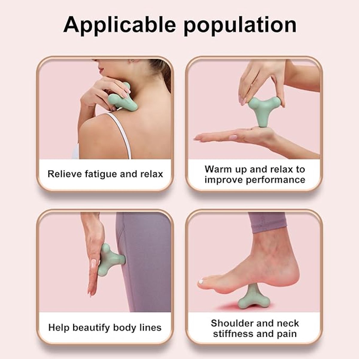 Precise Muscle Relaxation: Thanks to its unique and precise design and four trigger points, it can accurately locate and relax muscle knots and tension points, providing effective relief during intense workouts or prolonged sitting. Ergonomic Design: The massager features a curved four-corner design that perfectly conforms to the body's contours and provides a personalized massage experience directly on pain points for optimal comfort and efficiency. Multifunctional Application: Ideal for people who sit for long periods of time or engage in fitness activities, suitable for home, gym, office or outdoor use. Durable Construction: Made of high-quality TPE material, durable and long-lasting, for reliable long-term performance. Ideal Gift: Treat yourself for your hard work, relieve muscle and mental stress, or give it to family and friends to show them you care. Show more