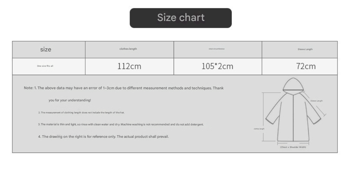 Stay dry and look great in any downpour with our fashionable "Adult Long Rain Poncho". Designed for both men and women, this versatile raincoat offers full coverage, excellent portability, and modern style, making it perfect for commuting, hiking, camping, festivals, travel, and everyday outdoor activities.
