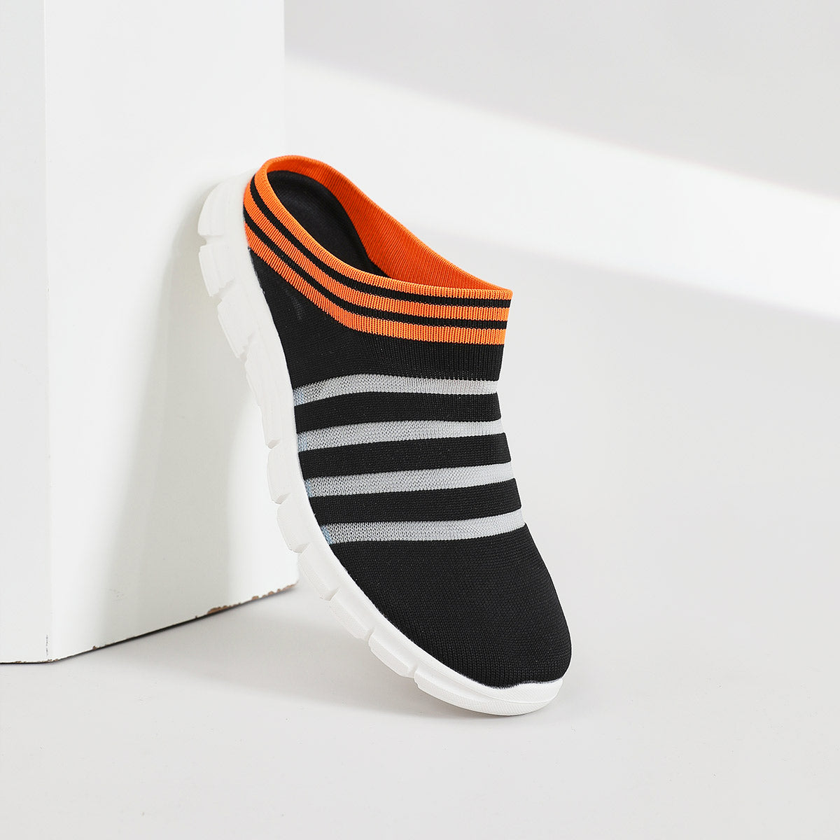 Designed for laid-back summer days, these lightweight slip-ons feature a soft knit upper and an easy backless design that makes them a breeze to wear. The skin-friendly material hugs your feet gently, while the flexible EVA sole provides cushioning for all-day comfort. With breathable construction and vibrant striped detailing, they’re your go-to choice for effortless style and cool, dry feet. (Matching ladie's version available!)