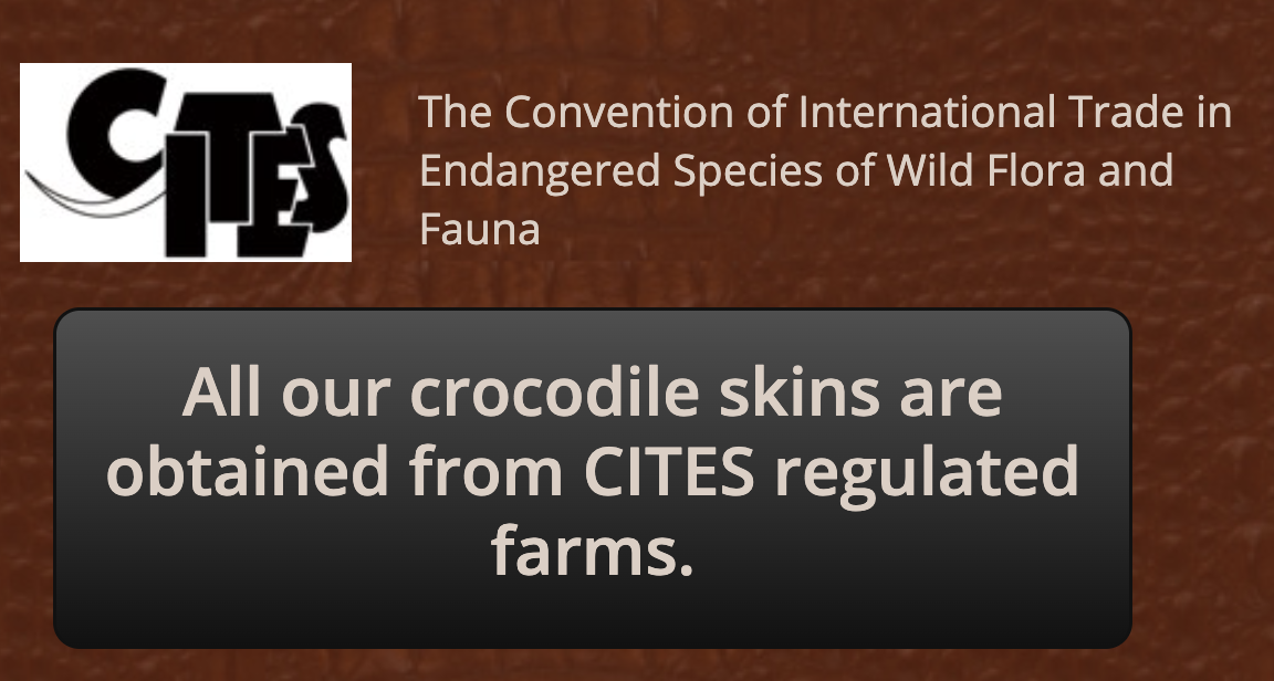 We believe in conservation, and only use crocodile skins obtained from CITES regulated and approved crocodile farms.