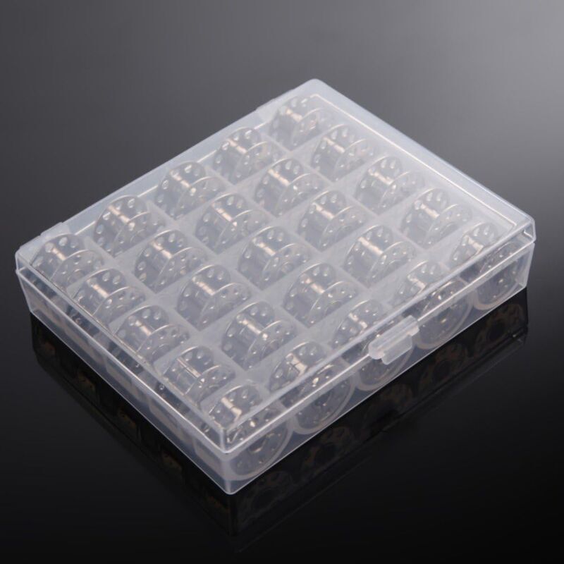 • Metal bobbins for sewing machines, suitable for most standard sewing machines, such as Brother, Singer, Bernina, Pfaff, Elna, Babylock, Kenmore, Juki, etc. Bobbin diameter 21 mm, height 12 mm, center hole diameter 6 mm. If the hole diameter of your machine's original bobbin is 6 mm, our product will fit your machine. 25 pieces of sewing machine bobbins with a storage box, cotton thread is not included. Material: durable carbide. Fine, standard, smooth metal bobbins. Storage box size: 12 x 10 x 2.5 cm. Total weight: 135 g. If the hole diameter of your machine's original bobbin is 6 mm, our product will fit your machine. Suitable for most standard sewing machines, such as Brother, Singer, Bernina, Pfaff, Elna, Babylock, Kenmore, Juki, etc. Bobbin diameter 21mm, Height 12mm, Center hole diameter 6mm, < br> Box size: 12*10*2.5cm/4.7'x3.9'x1'(Length x Width x Height) Total weight: 135g. Material: Durable carbide. Fine metal bobbins, standard, work well. Package includes: A set of 25pcs empty sewing machine bobbins with a storage box, cotton thread is not included.