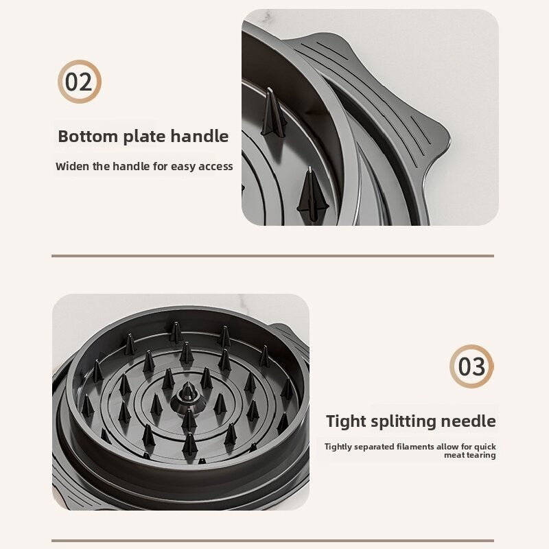 Constructed from high-quality, food-grade PP material, this meat tearing device is built for durability and safety in the kitchen. Unlike traditional methods that can lead to burnt fingers when handling hot meat, this tool allows you to shred freshly cooked proteins without direct contact. Its innovative internal structure ensures that meat is pulled apart evenly, which is perfect for creating professional-style tacos, pulled pork sandwiches, or shredded chicken salads. The compact design fits easily into kitchen cabinets, and the simple mechanical operation requires no electricity, making it a reliable addition to any local standard kitchen setup.