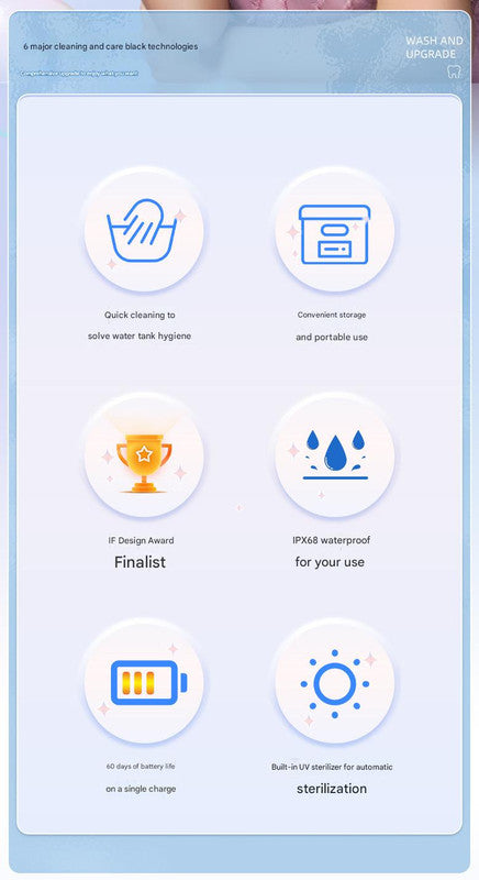 • Built-in UVCLED Ultraviolet Sterilization: Automatically sterilizes the nozzle when stored in the device body, ensuring hygiene.