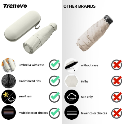 Stay prepared for sun or sudden showers with this ultra-compact mini travel umbrelladesigned for effortless portability and reliable daily protection. Its sleek, capsule-shaped design folds down small enough to slip into a handbag, backpack, or even a large pocket, making it the perfect companion for commuting, travel, or outdoor errands.