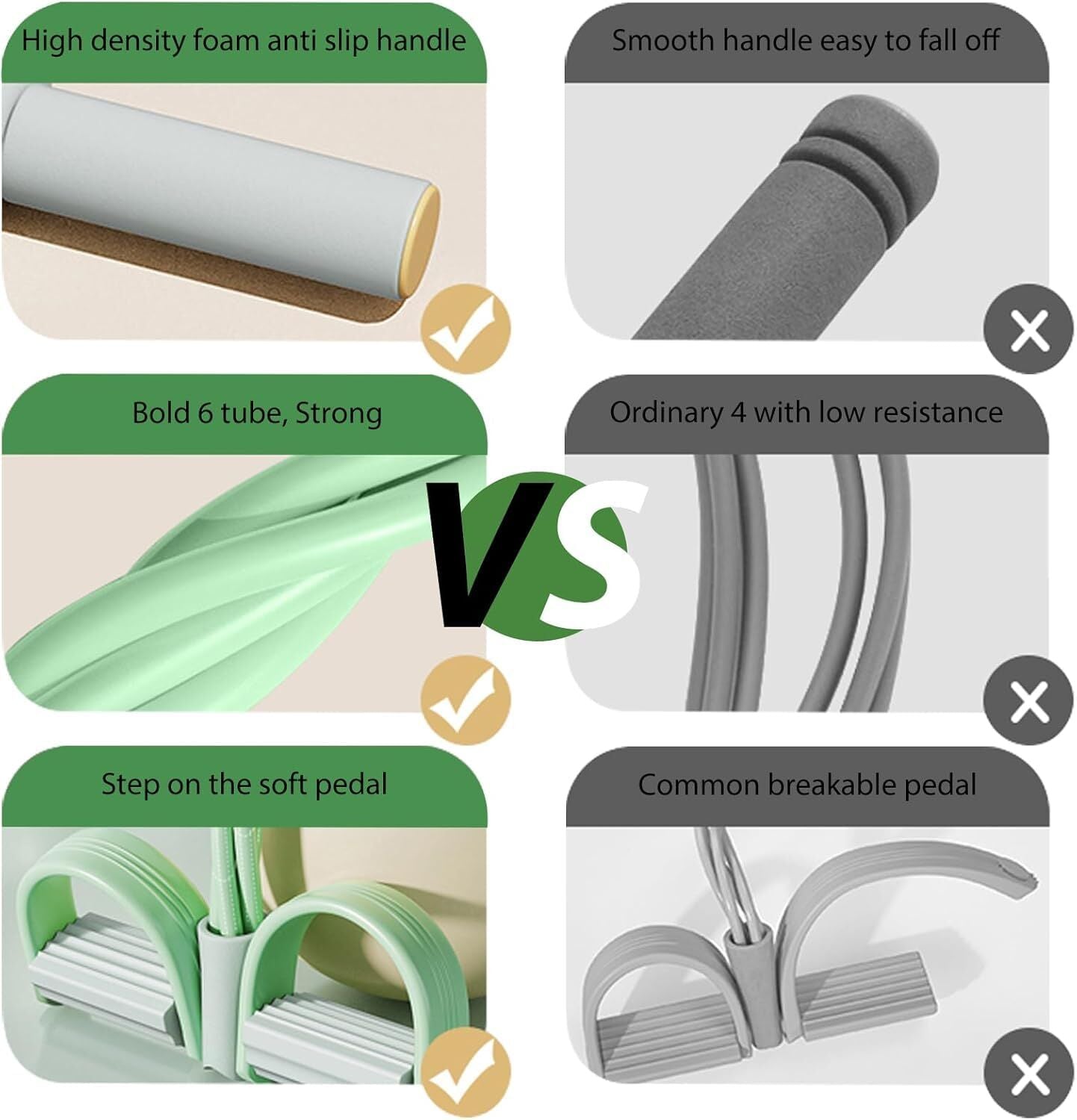 Multi-Function 6-Tube Resistance Band with Foot Pedal 2M Stretchable Home Workout Equipment for Full Body Exercise Adjustable Tension for Arms, Legs, Waist Abs Compact Design (Green)
