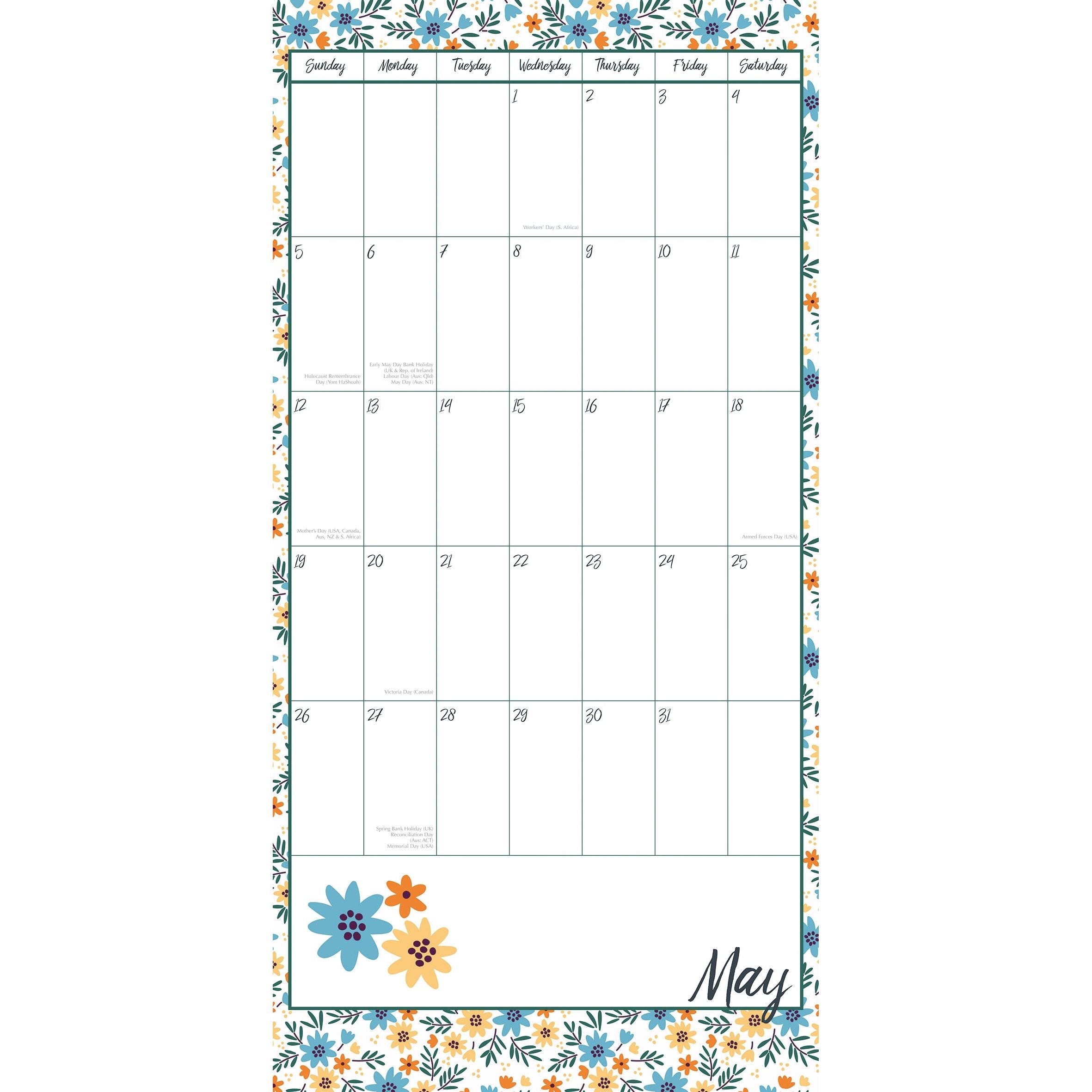 • Public Holidays and major religious dates are marked for Australia, New Zealand, UK, USA, Canada, Japan, and South Africa