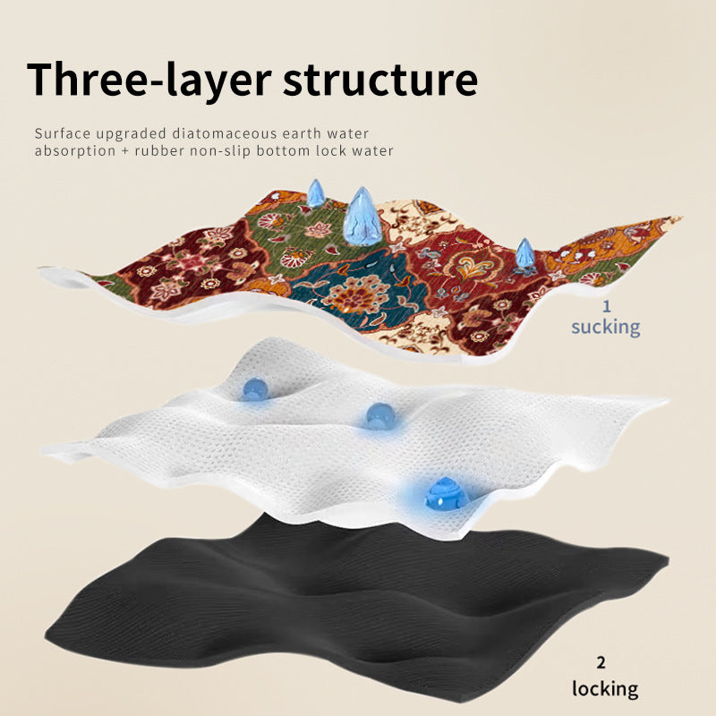 Step out of the shower with confidence using our Quick-Dry Bathroom Mat, a 3-layer water-absorbing rug designed for safety and convenience. Crafted with an upgraded diatomaceous earth surface, a water-locking middle layer, and a textured rubber non-slip bottom, this mat ensures fast absorption, quick drying, and a secure grip on any floor. Perfect for bathrooms, toilets, or kitchens, it's a durable, low-maintenance solution for busy households.