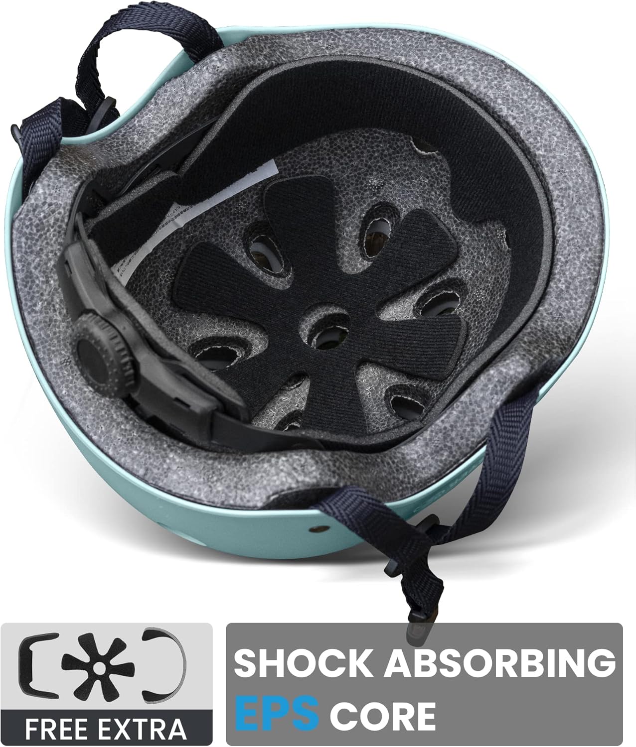 Protect kids with both comfort and impact resistance. REINFORCED ABS SHELL THICKENED SHOCK-ABSORBING EPS CORE provides solid protection when skateboarding, rollerblading, cycling and etc.