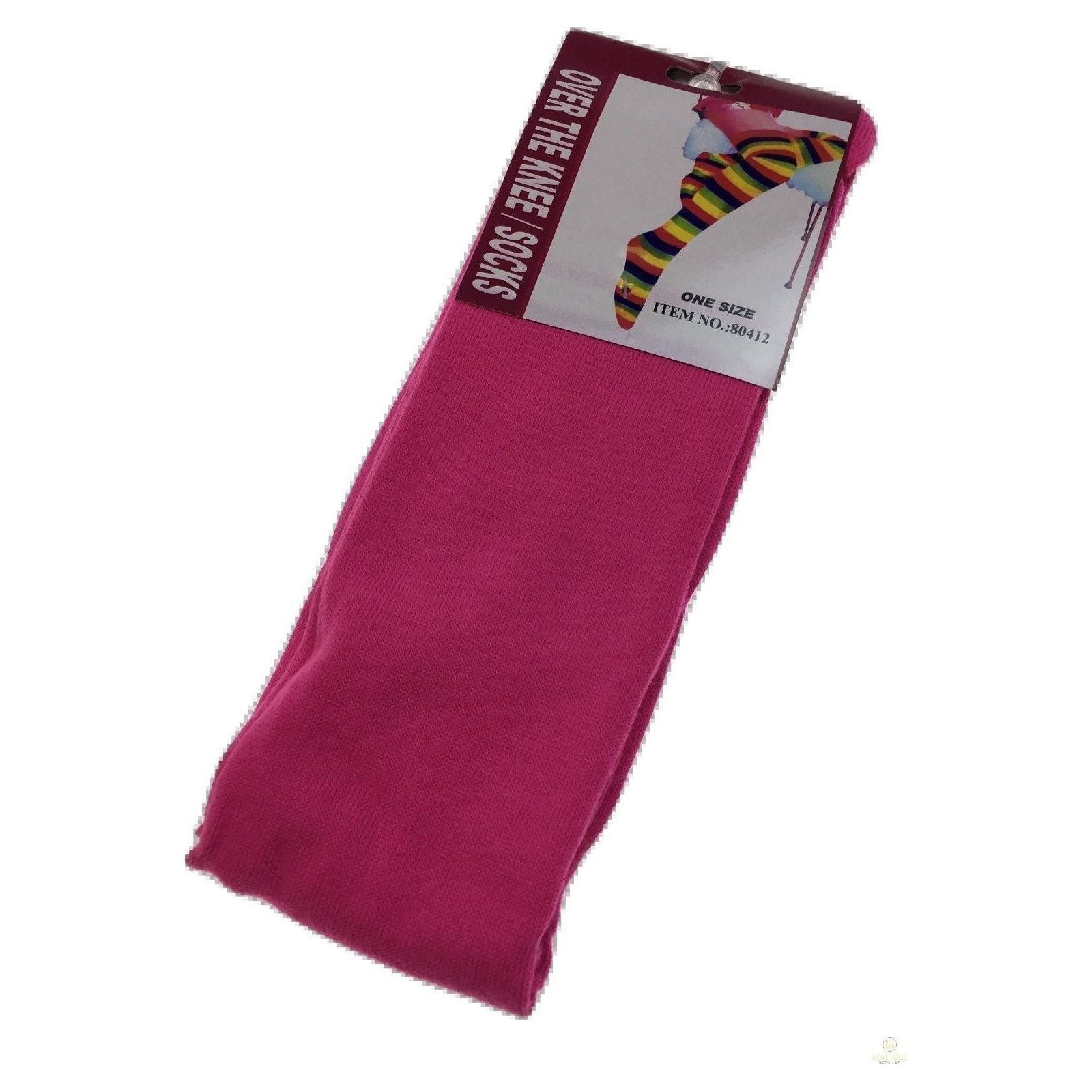 OVER THE KNEE SOCKS Plain Striped High Thigh Ladies Long Womens Stripey Stocking - Plain Pink