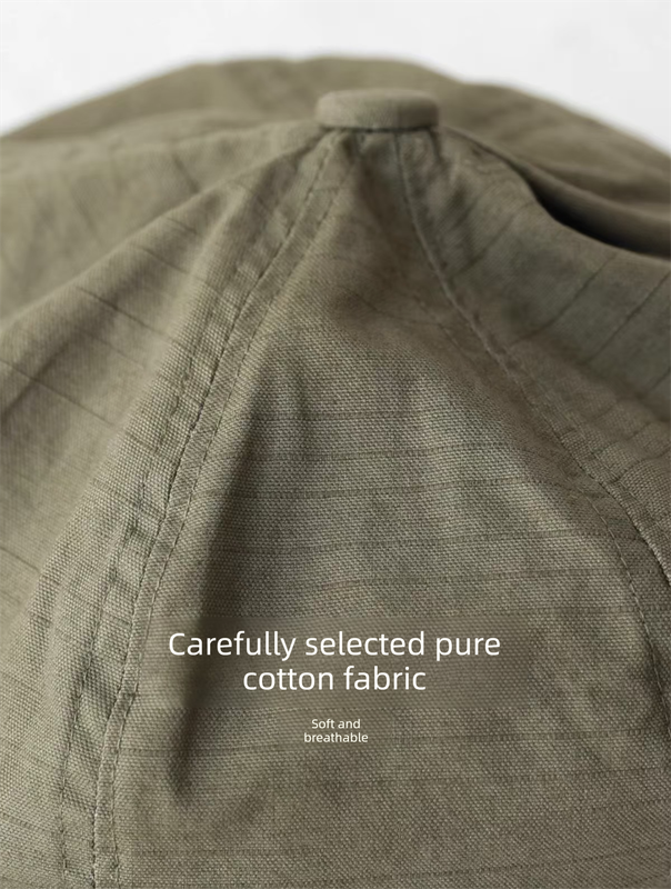 Master the art of casual styling with this versatile Black Painter's Hat. The beauty of this cap lies in its malleability; the soft, unstructured fabric allows you to shape the crown to the side, back, or front to suit your mood. The muted olive tone is an essential earthy neutral that pairs perfectly with denim jackets, trench coats, or chunky knitwear.