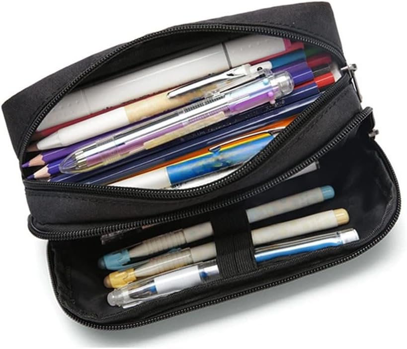 The pencil case provides enough space to store pencils, markers, highlighter, eraser, small ruler, tapes, and other items. Look compact and neat when zippered, making your desk or backpack organized.