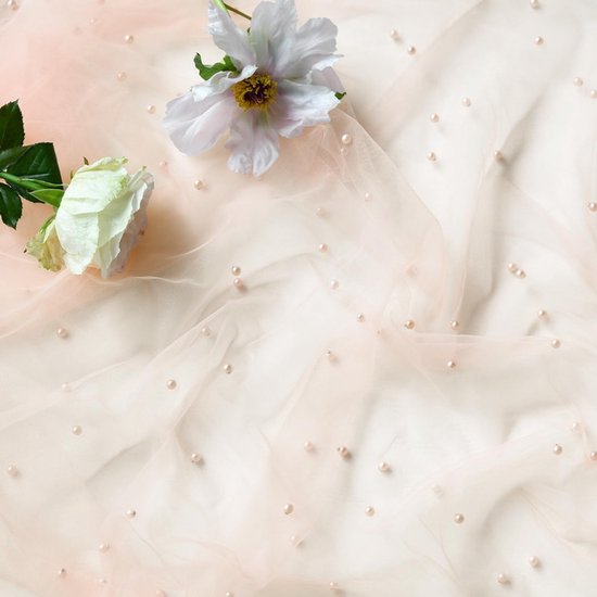 Give your party table an elegant and festive accent with this gauze veil. Embellished with delicate white pearls, it instantly adds a touch of sophistication and texture to any occasion.