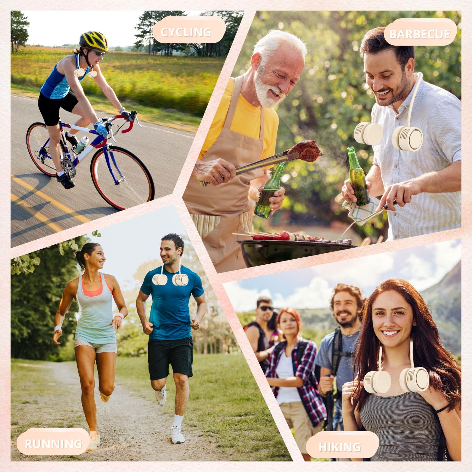Whether you're cycling, running, hiking, grilling, or working out at the gym, this portable neck fan keeps you cool, free-handed, and focused. Its minimalist white design makes it a stylish and practical gift for anyone who values comfort and innovation.