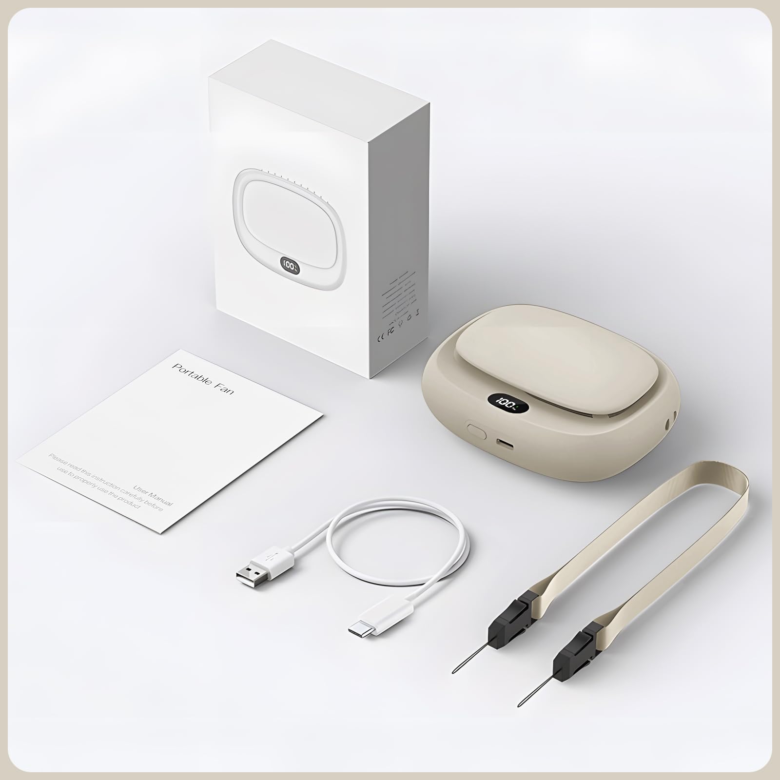 Stay cool and comfortable wherever you go with this rechargeable portable neck fan a smart, lightweight solution for beating the heat. Designed for convenience and comfort, this mini fan combines powerful airflow with quiet operation, making it ideal for daily use at work, during travel, or while enjoying outdoor adventures. Featuring a sleek, ergonomic design in soft beige, it fits seamlessly into any lifestyle.