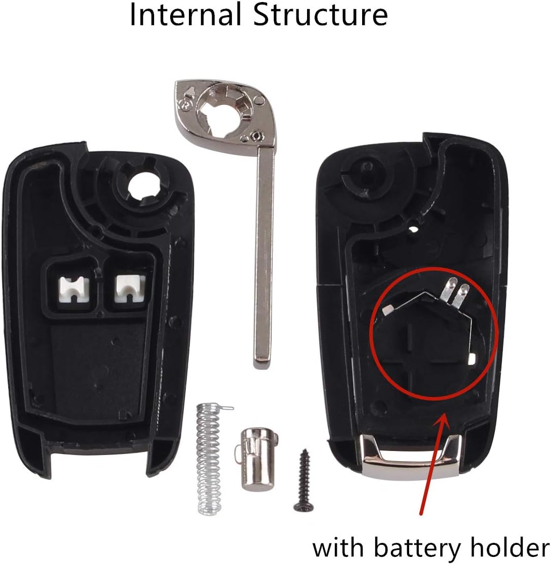 Fitment: 2 Button Flip Key Shell fits Opel/Vauxhall Astra J Insignia Mokka Zafira C Corsa D Corsa E Cascada Meriva Adam Karl VIVa. (Other models with the same appearance, please compare carefully before purchasing!) Best replacement for a key with broken buttons or worn key case. This product is not a remote key, it is just a key shell. It does not contain any internal electronic components (remote/electronics/ignition or transponder chip). This key shell comes with an uncut key blade. Have it sharpened by a local locksmith/dealer or replace the blade with your original blade to match your car. Easy installation: Just cut the key blade, take the internal electronics (including immobilizer/transponder chip) from the original remote and place them in our key shell.