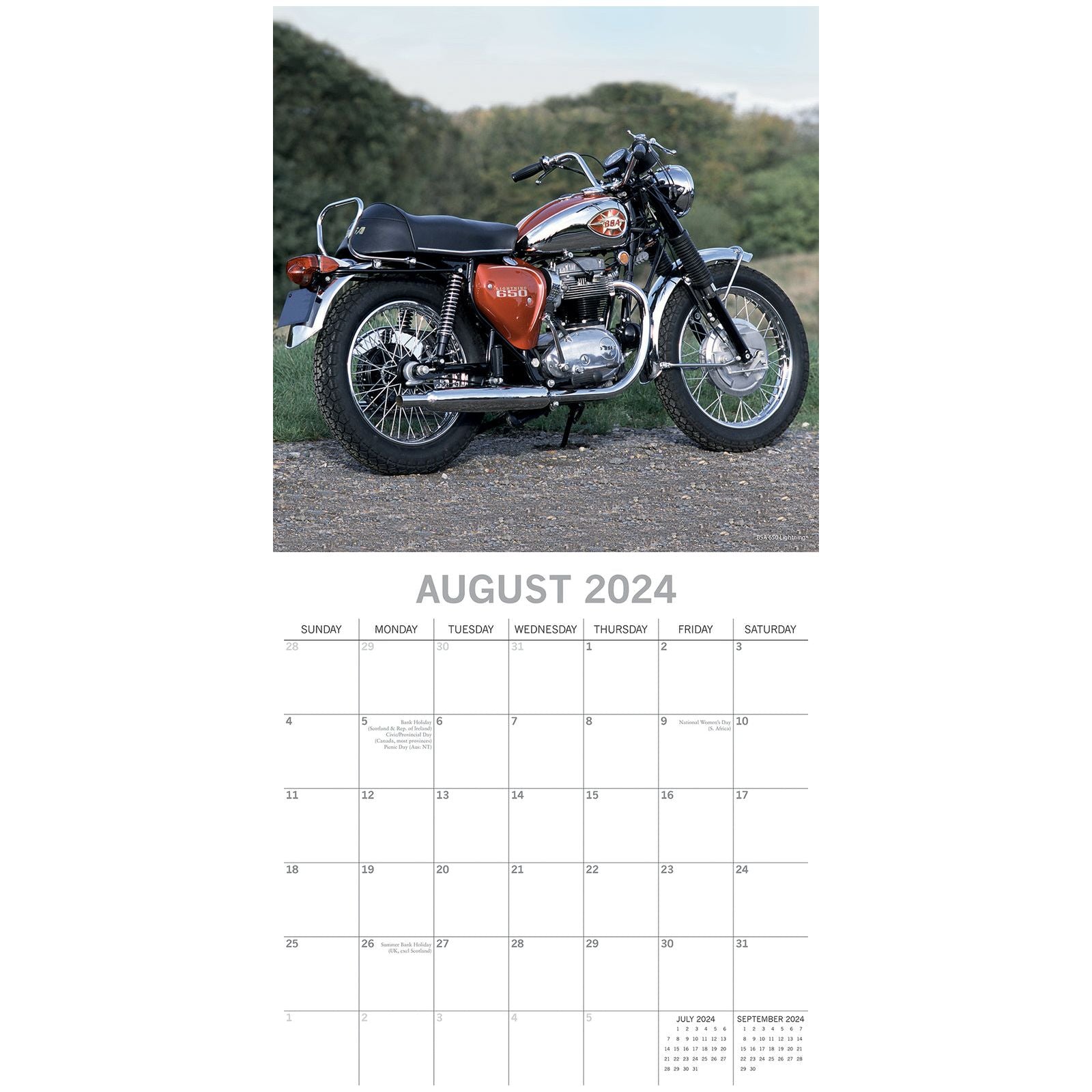 Retro Motorbikes - 2024 Square Wall Calendar 16 Months Planner New Year Gift