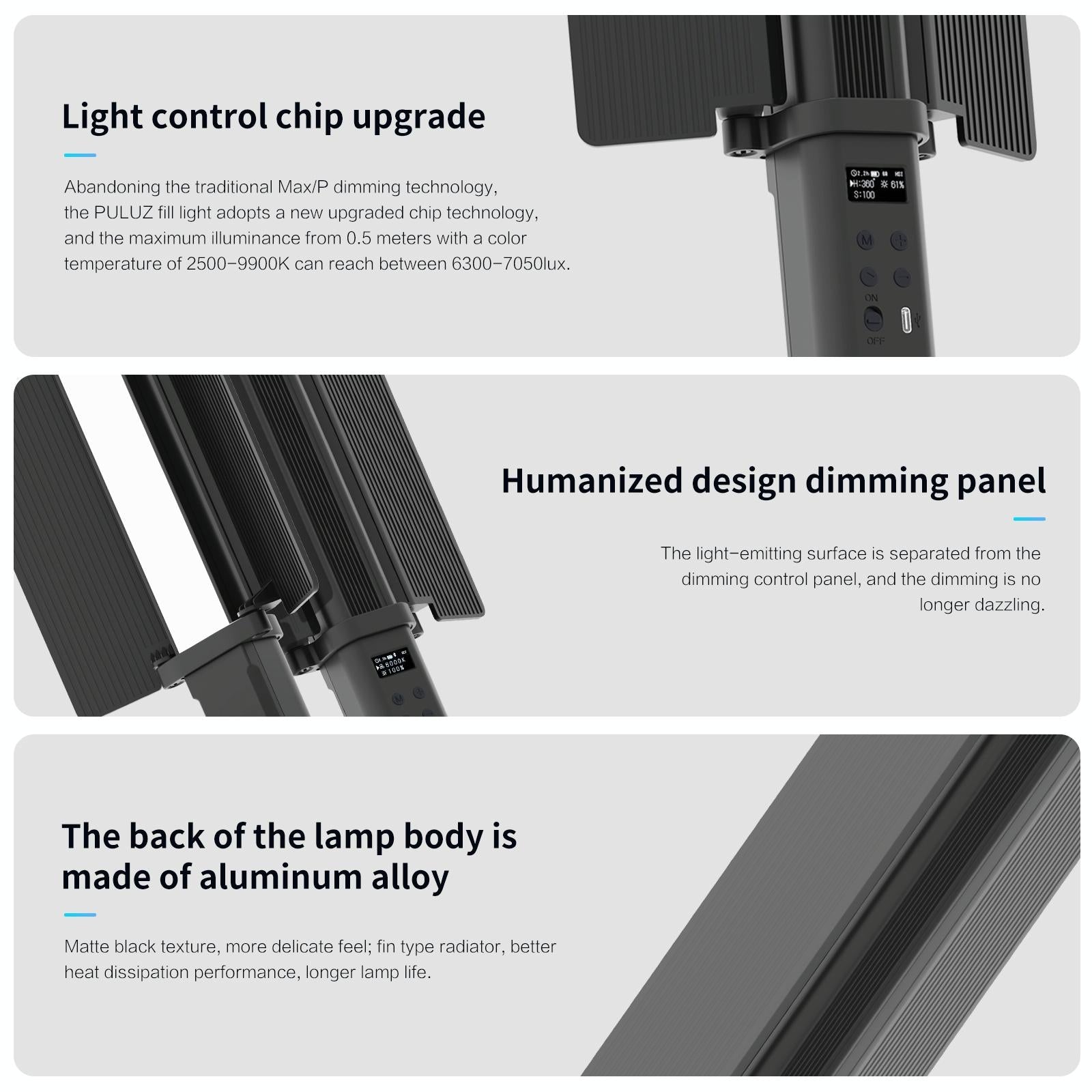 • High CRI of 95 and CCT mode for stepless dimming colour temperature (2500-9900K) and 10 levels of brightness