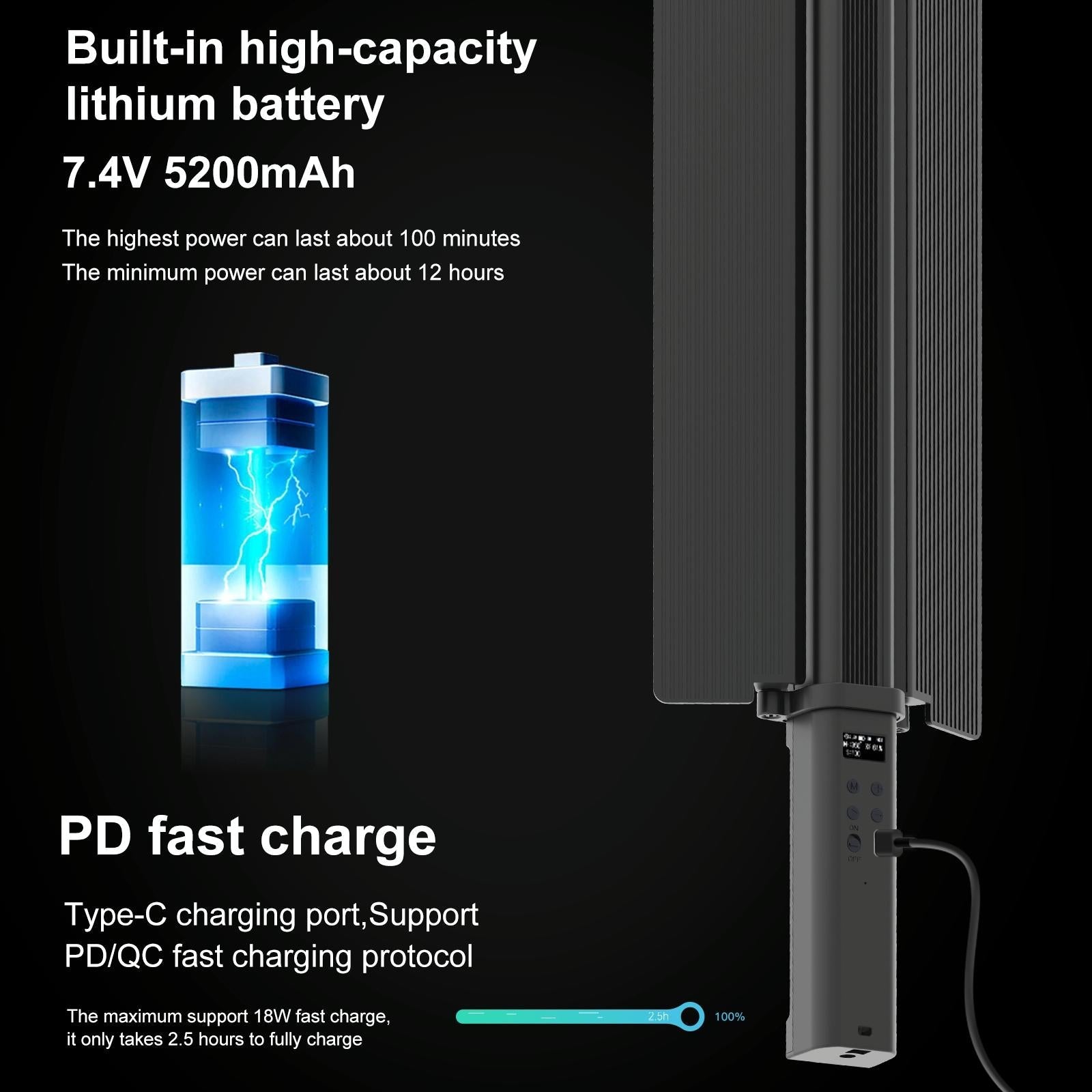 • Large-capacity 5200mAh lithium battery with up to 1.65 hours of full power output time