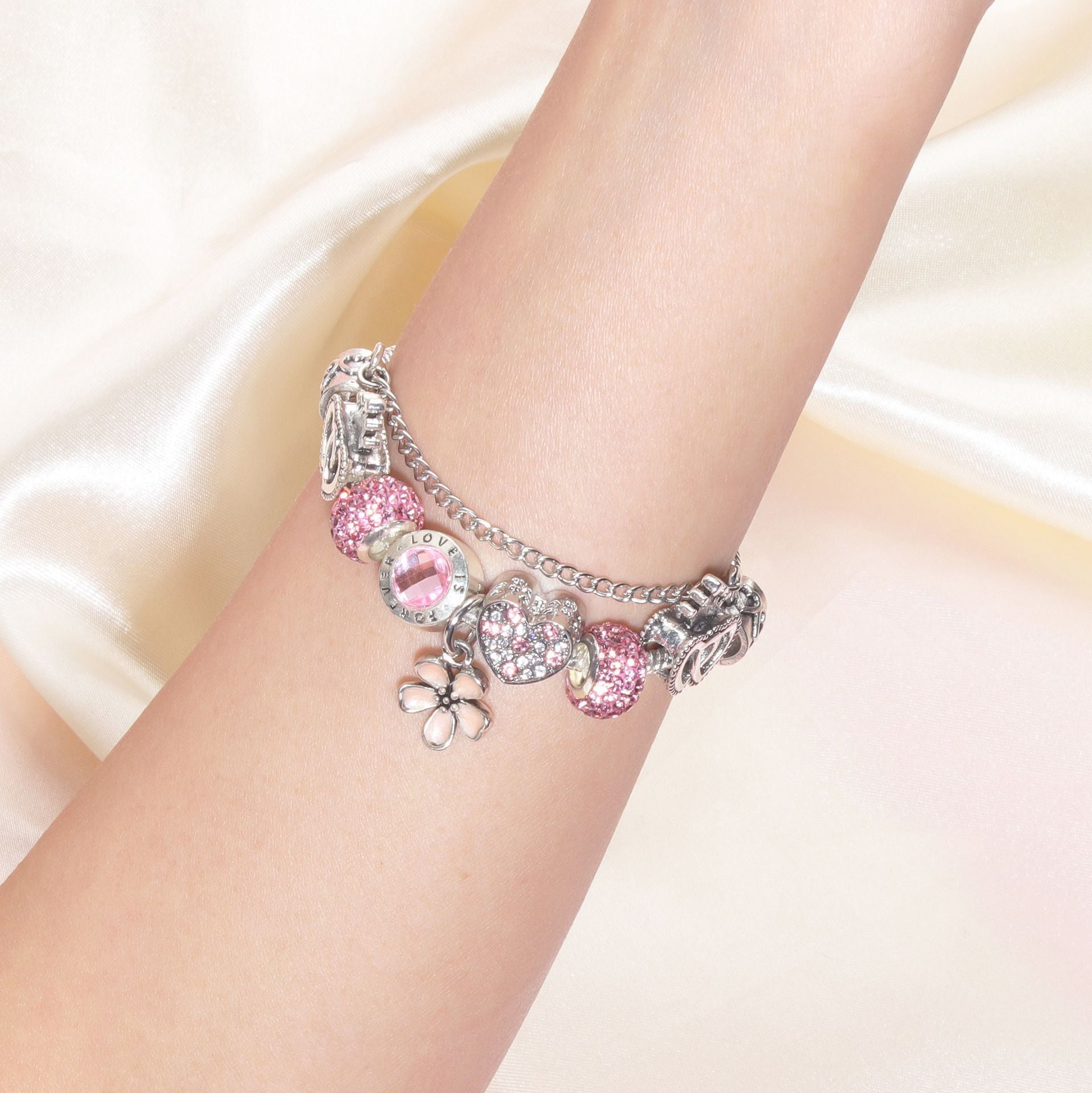 Introducing our Rhinestone Bead Bracelet with heart and crown motifs, available in pink, blue, and silver. It features an adjustable lobster clasp and comes in six lengths (1621cm) to suit all wrist sizes. Crafted from alloy with electroplating, the bracelet boasts vibrant colors and a fresh, sweet aesthetic, ideal for elevating everyday outfits or adding charm to special occasions. Whether as a self-purchase or a gift for friends and family, it merges style and practicality. Its meticulous craftsmanship ensures durability and a lasting shine, making it a staple accessory for fashion-forward individuals. |