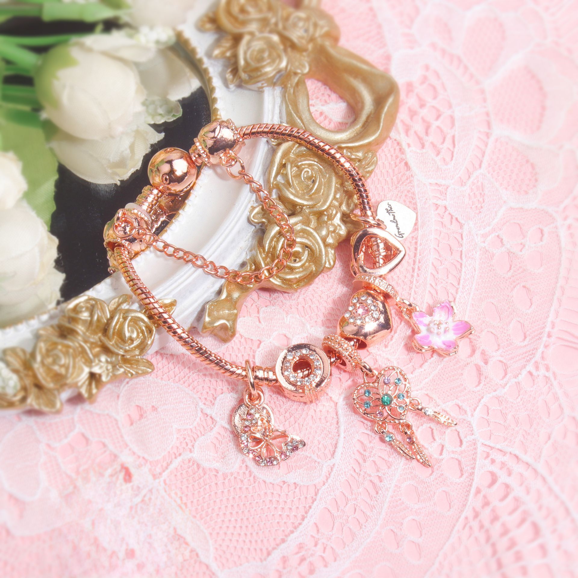 Rose Gold Bracelet with Dreamcatcher Lily Pendant, Crystal Zircon Beads - Fashion Jewelry for Women, 4 Sizes (17-20cm) |