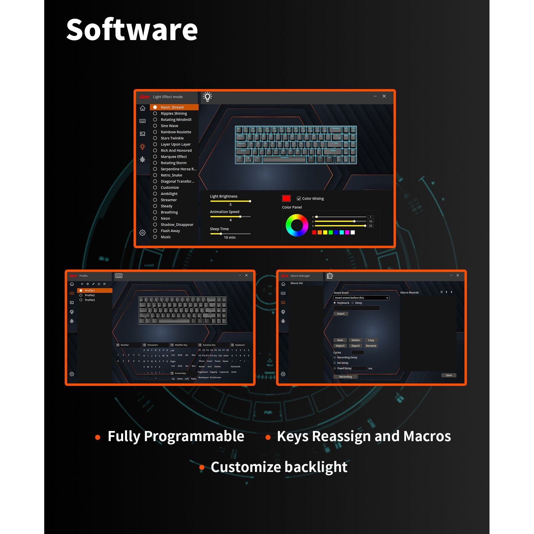 • That is THREE MODES: Believe it or not, this is the first generation of RGB three-mode wireless keyboards on the market. Wireless mode with stable bluetooth 5.0, hassle-free 2.4Ghz dongle plus USB-C wired mode set no limits about your keyboard connection.