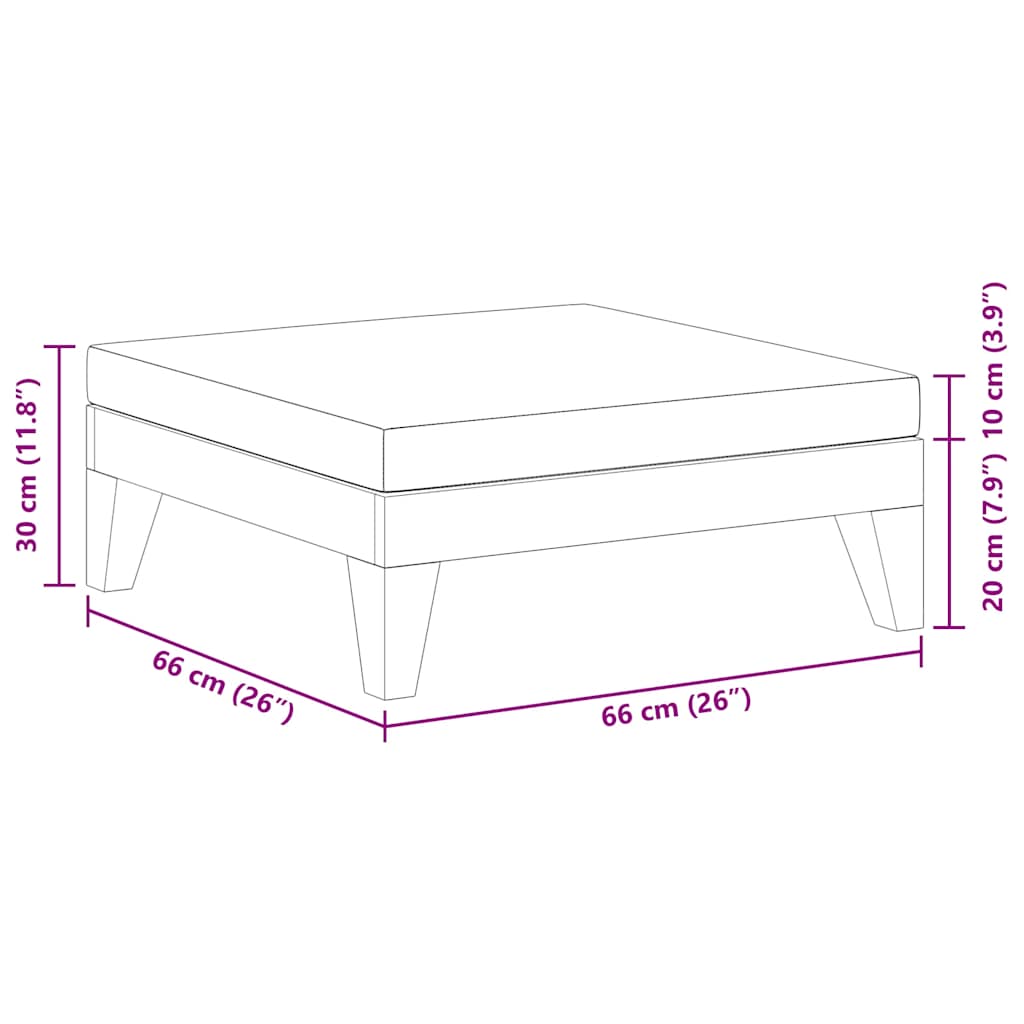 This wooden footrest is an ideal choice for you to relax and enjoy the weather, take a nap, or chat with your family or friends. The footstool is made of solid acacia wood, a tropical hardwood, which is weather-resistant and highly durable. It has a solid construction and requires little maintenance. Combined with thickly padded cushion, this ottoman provides the utmost comfort. The footrest is specially designed for serving as a part of a lounge set and it also can be used as a single table. You can combine it with other modular segments like corner sofa and middle sofa to create your own personal garden lounge set configurations! Note: In order to extend the life of your outdoor furniture, we recommend you to clean it regularly and do not leave it outdoors without protection unnecessarily.Clean: Use a mild soap solution.Storing: If possible, store in a cool, dry place indoors. If the product is stored outdoors, protect it with a waterproof cover. Wipe and dry the excess water or snow from flat surfaces after a rain or snowfall. Allow sufficient air circulation to avoid moisture-related damage.