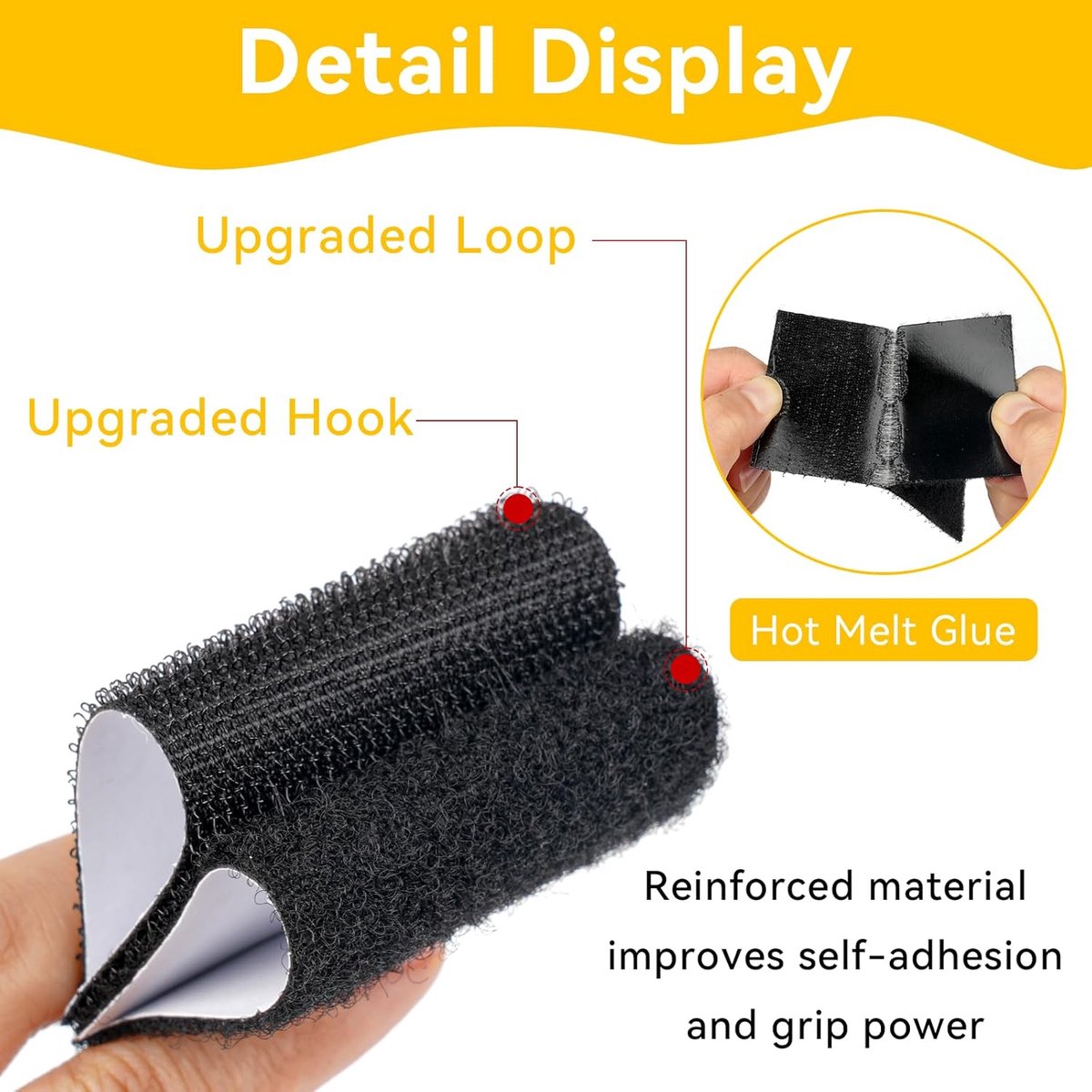 [Strong Adhesion] This self-adhesive hook and loop tape is made with high-quality hot melt adhesive for excellent adhesion. It can support up to 750 grams of vertical weight, making it ideal for storing most everyday items. [Strong Adhesion] Our self-adhesive hook and loop tape features a thin, dense adhesive and strong hooks for a secure grip, a tight fit, and is reusable. [Compact & Portable] Our double-sided self-adhesive hook and loop tape comes in a convenient size (5 x 10 cm). A pack of 20 is perfect for home and office use. You can also cut your own hook and loop tape for minor repairs. [Easy to Use] With self-adhesive hook and loop tape, there's no need to drill holes or screw in screws. Simply peel off the protective adhesive, apply the tape to the desired location, and wait 24 hours before securing heavy items. [Versatile] Our self-adhesive hook-and-loop tape is suitable for smooth walls, tabletops, car interiors, and floors. It can be used to secure remote controls, curtains, electrical outlets, picture frames, rugs, toothbrushes, cups, trash cans, and more. Show more