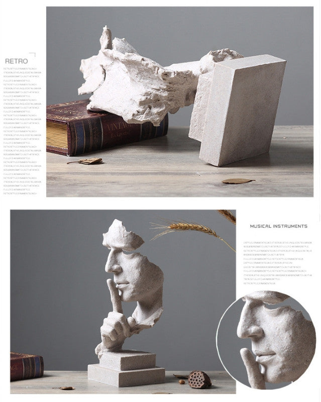 Introduce a touch of modern sophistication and contemplative art to your space with this striking 'Silence is Golden' sculpture. Its abstract design and powerful symbolism make it a compelling focal point for any room, encouraging quiet reflection in a busy world.