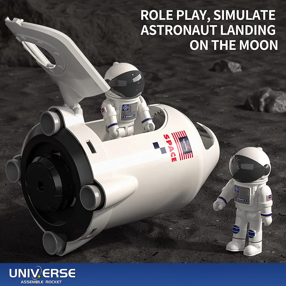 5 IN 1 DETACHABLE ROCKET:The rocket consists of two astronauts, a spaceship, a first-stage rocket, a second-stage rocket and 4 boosters. Detachable assembly. The astronauts are also movable, and kids can role-play on a cosmic adventure! Each capsule can be independent, or it can be an integral rocket. Children can also learn about the structure of rockets as they play.