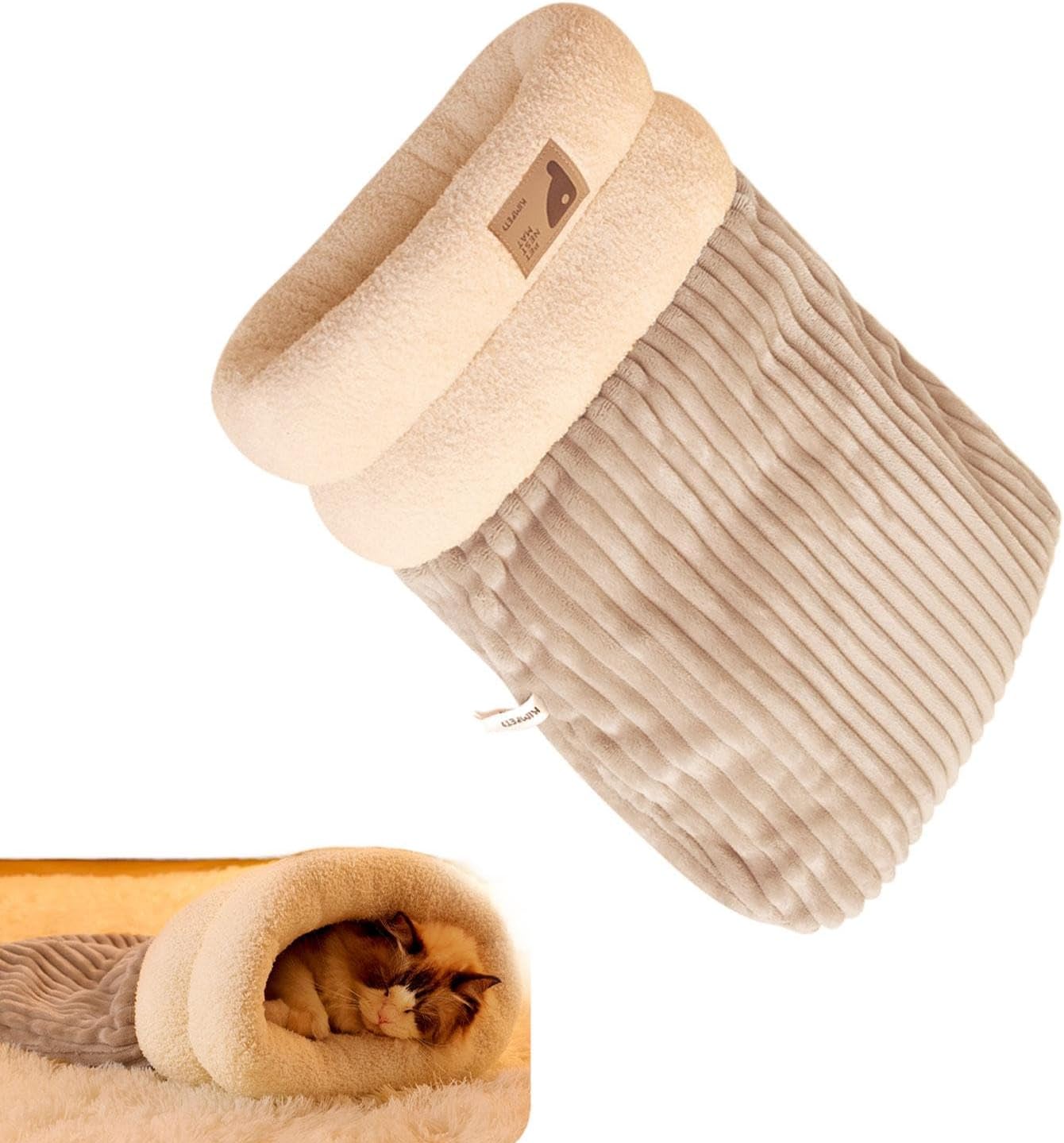Protected Nest: The semi-enclosed structure of our cat sleeping bag not only satisfies your cat's curiosity, but also offers a safe and spacious place to retreat to rest and recharge. Give your cat a soothing and comfortable place Winter Comfort: With a three-layer, thickened design and an outer layer of velvet, this cat sleeping bag provides ideal comfort for your furry friend in winter. The inner layer is filled with soft cotton velvet and PP cotton, the middle layer is made of warm lambswool Suitable Gift: Cat and dog lovers will love this cozy sleeping bag, making it an excellent gift for birthdays or special holidays like Thanksgiving and Christmas Easy to Carry: Thanks to its compact and lightweight design, you can take this cat sleeping bag with you wherever you go. Your furry friend can comfortably take a nap outdoors Sustainable Materials: Your cat will love to snuggle in our cat sleeping bag made of a nice, warm velvet material. Chosen for its softness and safety, the cute look is an added bonus for style-conscious owners