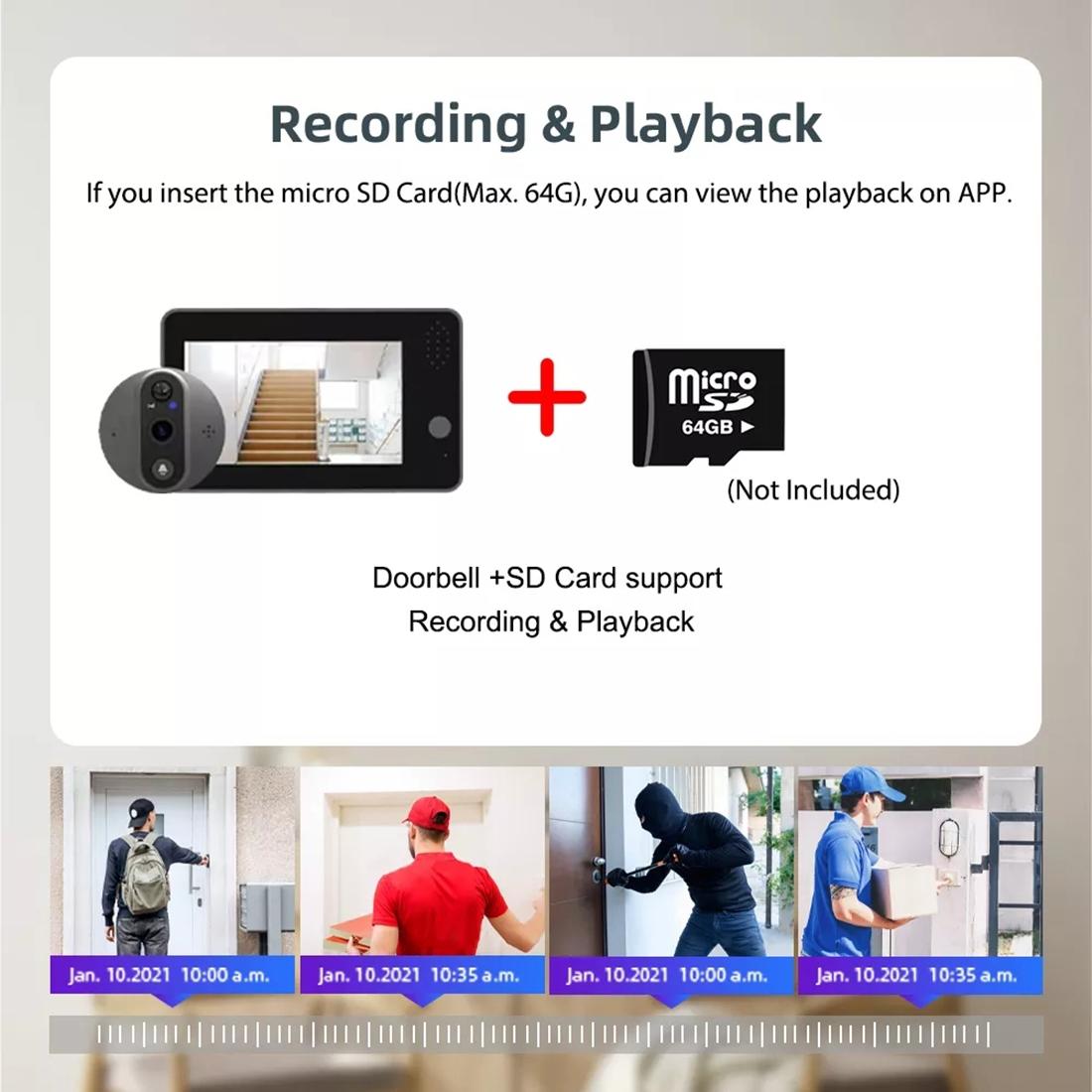 � 1 x 4.3 Inch Wifi Doorbell Viewer Support Night Vision & Motion Detection & Remote Voice