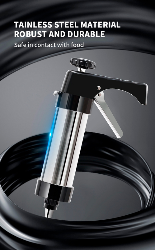 Elevate your home baking game with this professional-grade Stainless Steel Cookie Press and Icing Gun Kit. Perfect for preparing treats for morning teas, birthday parties, or holiday gatherings, this versatile tool takes the hard work out of creating uniform, bakery-style biscuits. With a sleek black handle and durable stainless steel body, it serves a dual purpose: efficiently pressing out perfectly shaped dough and acting as a precise icing syringe for decorating cakes and cupcakes.