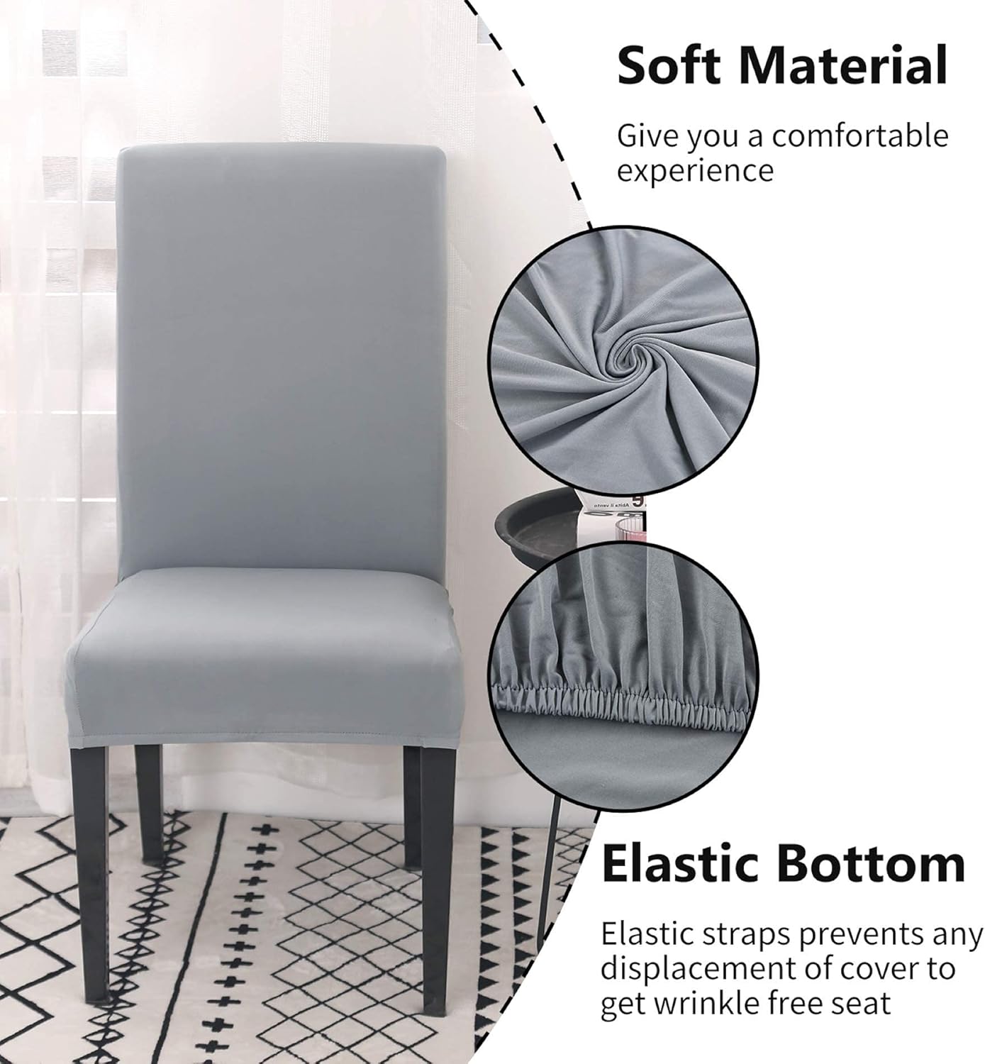 • DO YOU STILL HAVE YOUR OLD CHAIRS? It's time to give them a new look at the lowest cost. Restaurant chair covers can freshen up your old chairs, extend the life of the chair and save you money. Most importantly, it is very cheap and affordable to implement. A variety of styles are available. It can give your old or ugly chair a new look. Protect your chair from scratches, stains and damage. Since the chair cover is easy to remove, it saves you the trouble of cleaning the chair. You just need to remove the chair cover and throw it in the washing machine to easily complete the cleaning. Prevent your chair from being scribbled by children or bitten by pets. Suitable for most chairs. Back height: 17.7~25.6 inches (45~65cm); Seat depth and width: 15~17.7 inches (38~45cm). Please check the measurement guide and measure your chairs accordingly before ordering. Soft material, comfortable and wrinkle-free, no ironing required. Stretchy material, stretch that recovers quickly, secure fit with sewn-in elastic hem. Machine washable, easy to clean. High elasticity, durable and long-lasting, refresh your interior. Chair cover fits most parsons chairs. It can be used for hotels, wedding banquets, dinners, meetings, kitchens, conferences, restaurants, parties, ceremonies, family dining room decoration, etc.