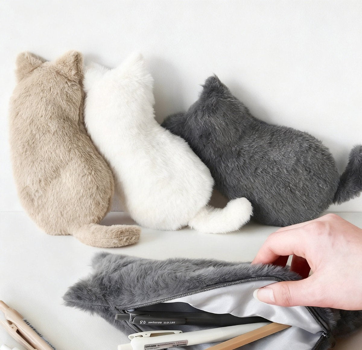 Cute cat design: This pencil case features a cute cat design with a playful look, which will bring a cheerful atmosphere while studying or working. The compact and fun design fits easily into a backpack, school bag or handbag. Spacious capacity, well-organized storage space: The interior space is suitable for storing multiple pens, pencils, highlighters, erasers and small rulers. In addition, the pencil case can also be used for makeup brushes, small accessories or charging cables, keeping everything neatly organized. Lightweight and durable for daily use: Made of durable fabric with a comfortable texture. The pencil case holds its shape well and is lightweight, making it suitable for daily use at school, the office or on the go. Multifunctional use: Can be used as a pencil case for school or work, but also as a practical storage bag for small personal items. Ideal for home use, travel or in your bag on the go. Fun and practical gift: Thanks to the popular cat motif, this pencil case is a fun and functional gift for children, students, friends or cat lovers. Suitable for birthdays, the new school year, or as a small everyday surprise. Show more